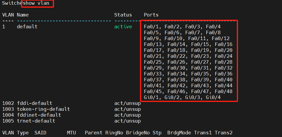 所有的端口都默认在vlan1内