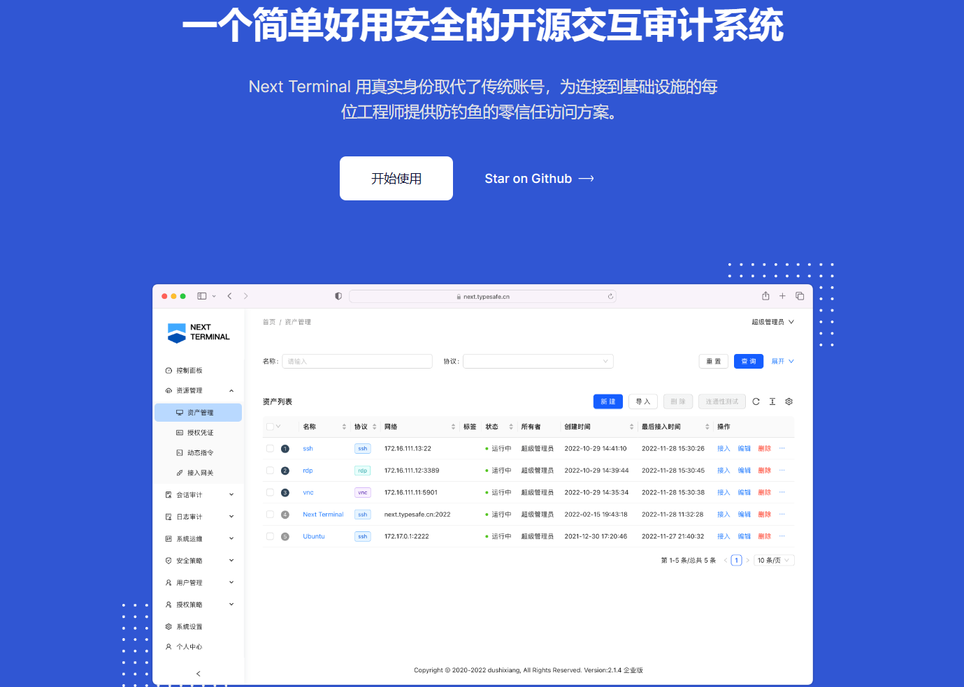Next Terminal 是一款开源的网页版远程桌面工具,支持连接 RDP、SSH、VNC 和 Telnet 协议。部署后,就可以在任何一个浏览器中,远程控制你的 Windows、macOS,以及 Linux 系统了,支持批量运行命令、多用户授权、二次验证登录、操作记录回放等功能。