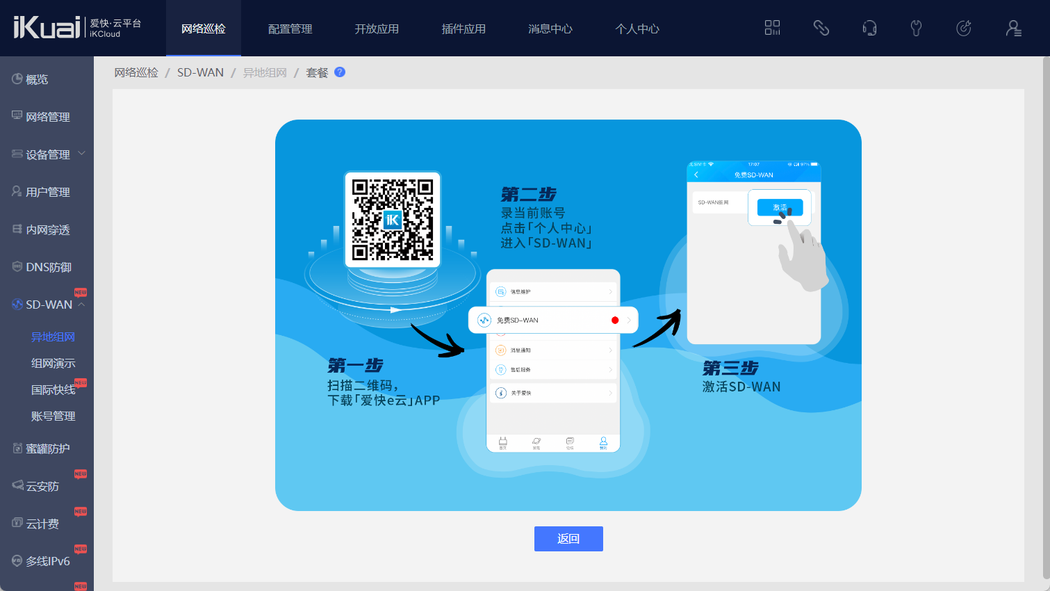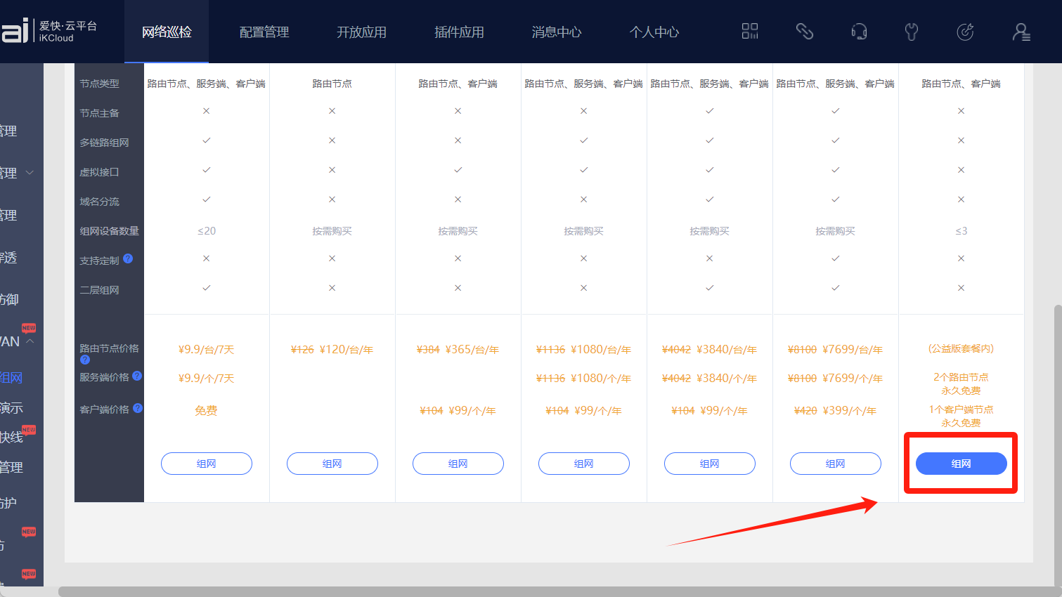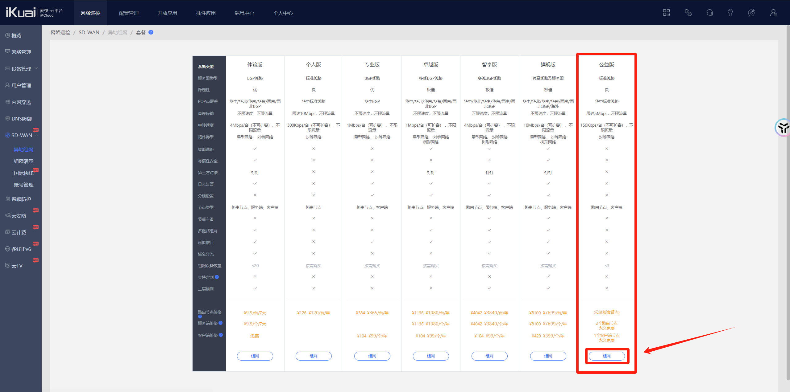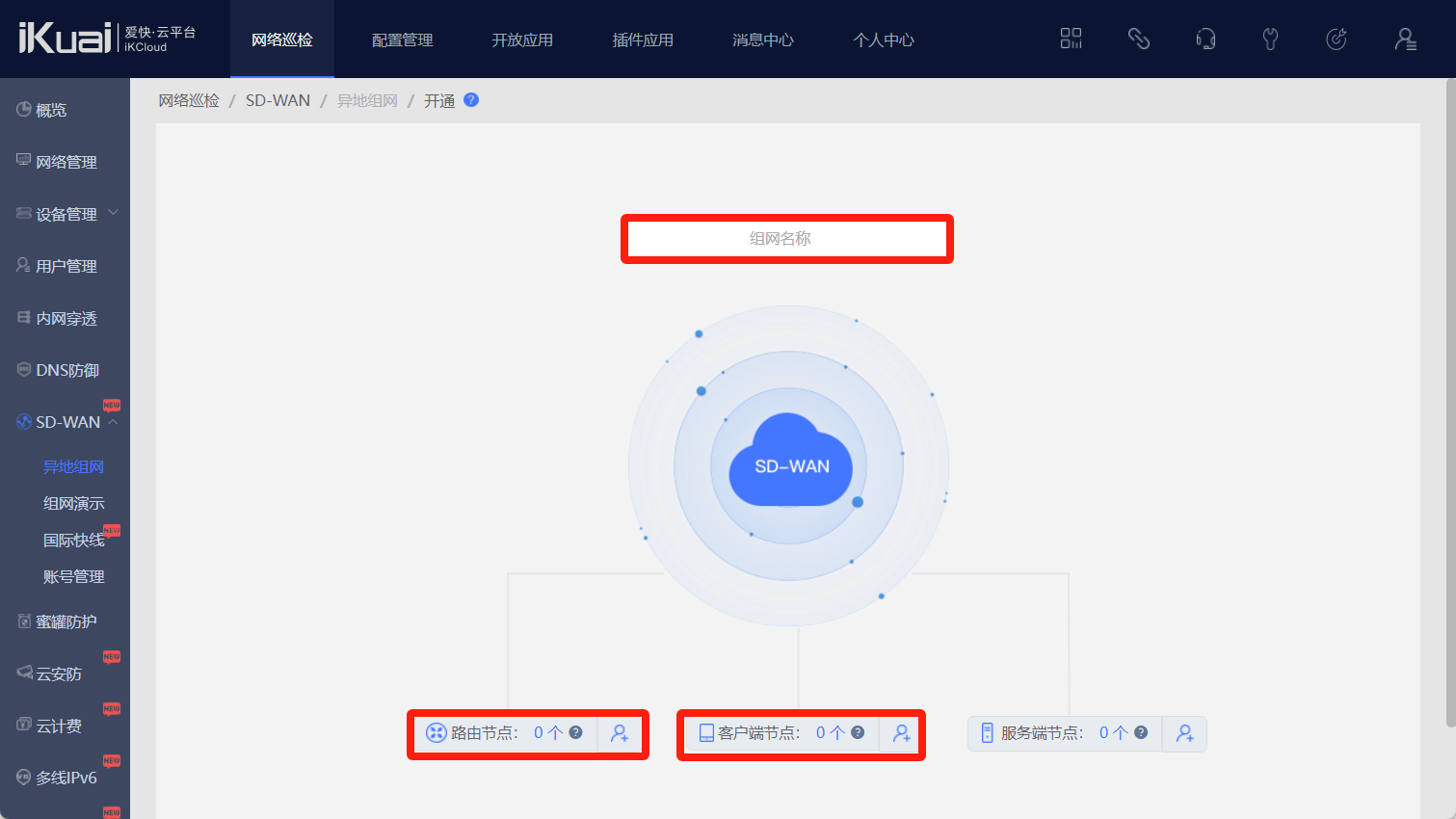 点击我的--免费SD-WAN--免费添加组网