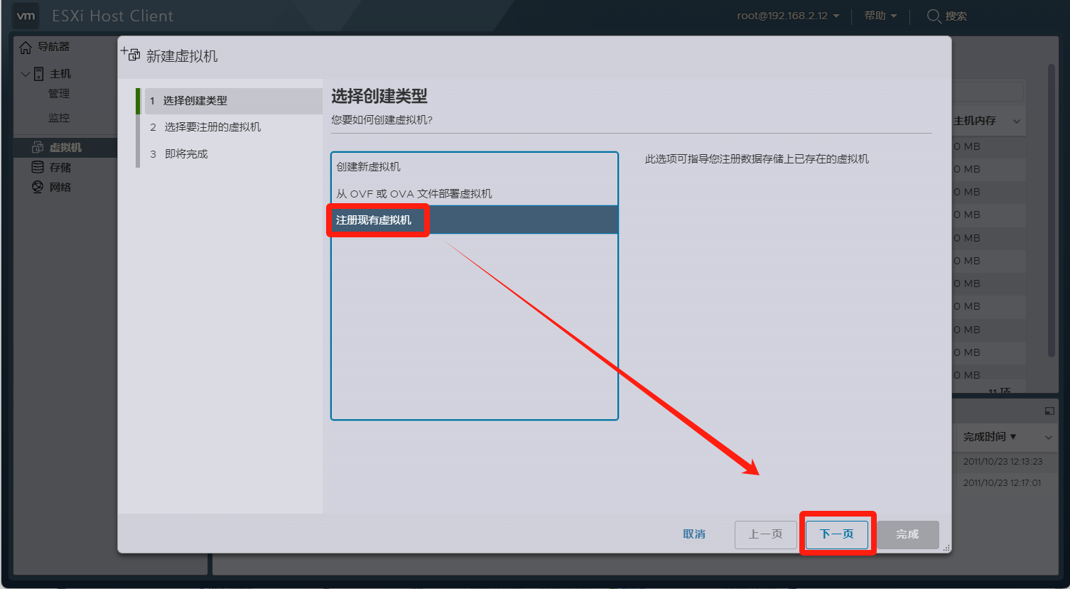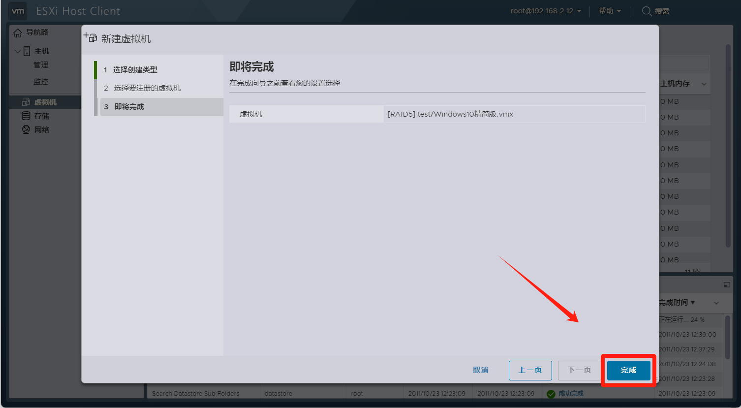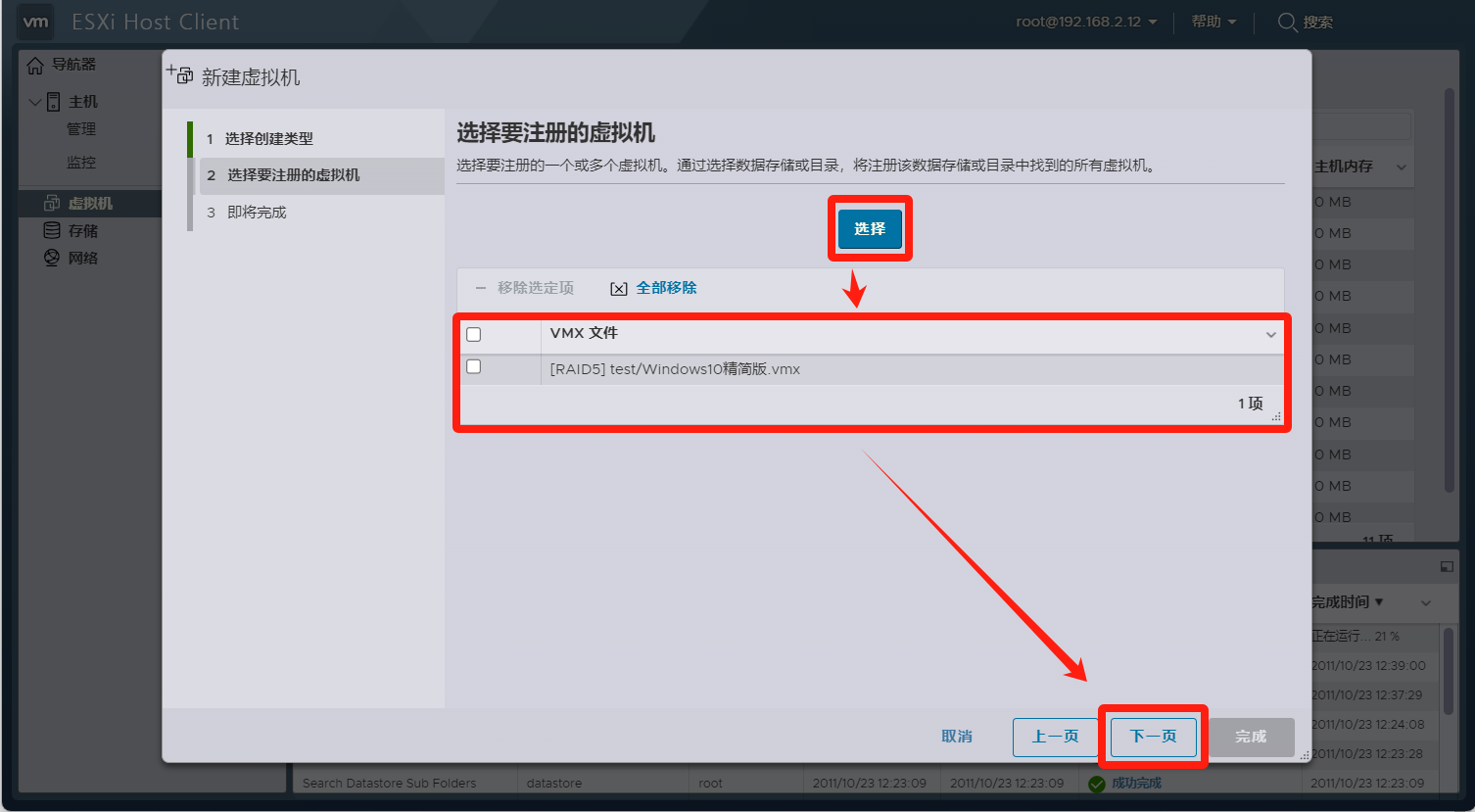 是你的虚拟机文件问题,要么命令连接ESXI复制虚拟机文件,要么换个虚拟机。