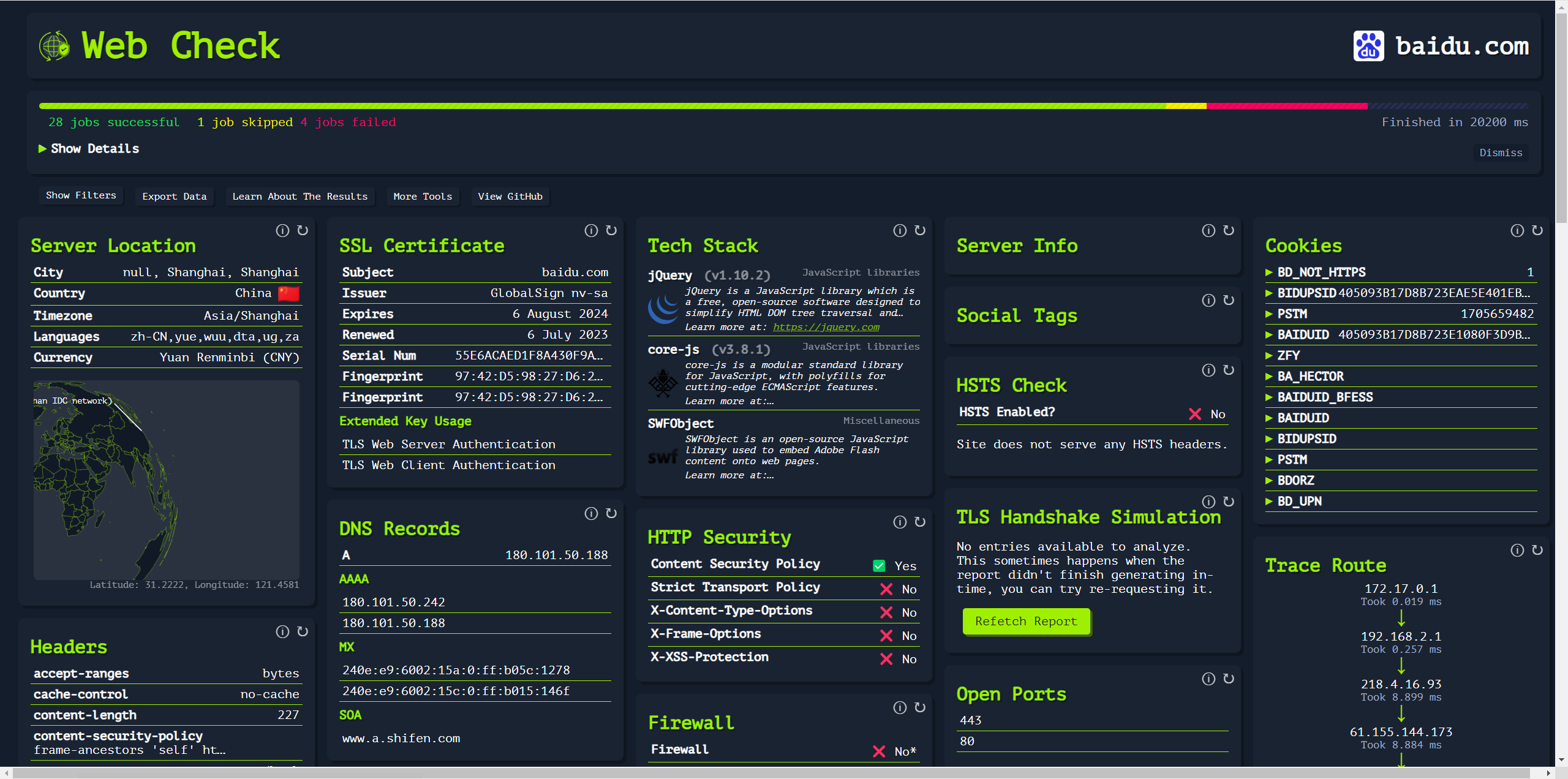 群晖Docker安装WebCheck超酷的网站检测分析工具
