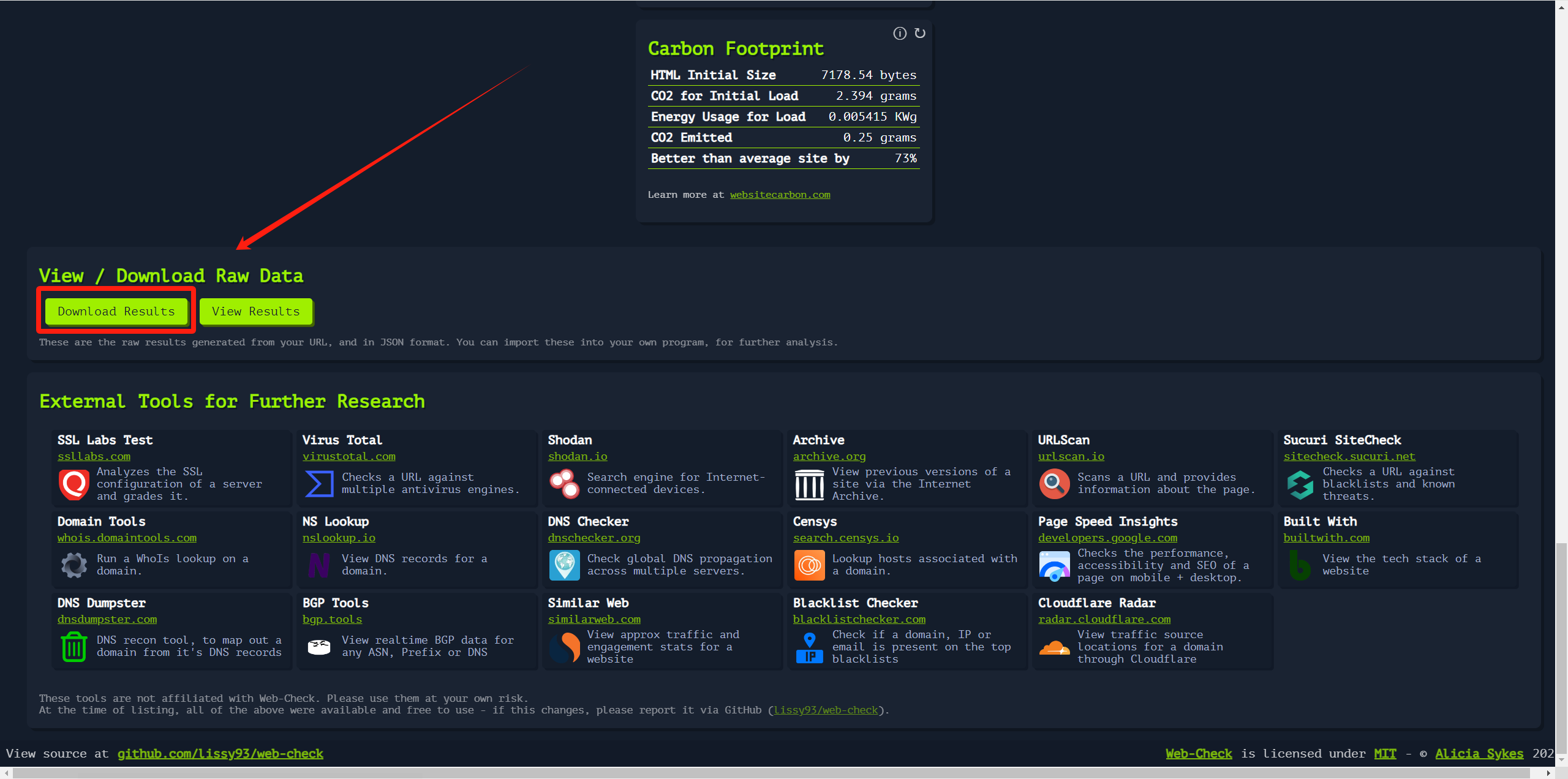 下拉到底部,也可以将网站检测原始数据下载到本地。