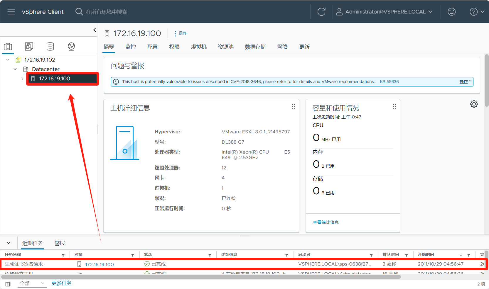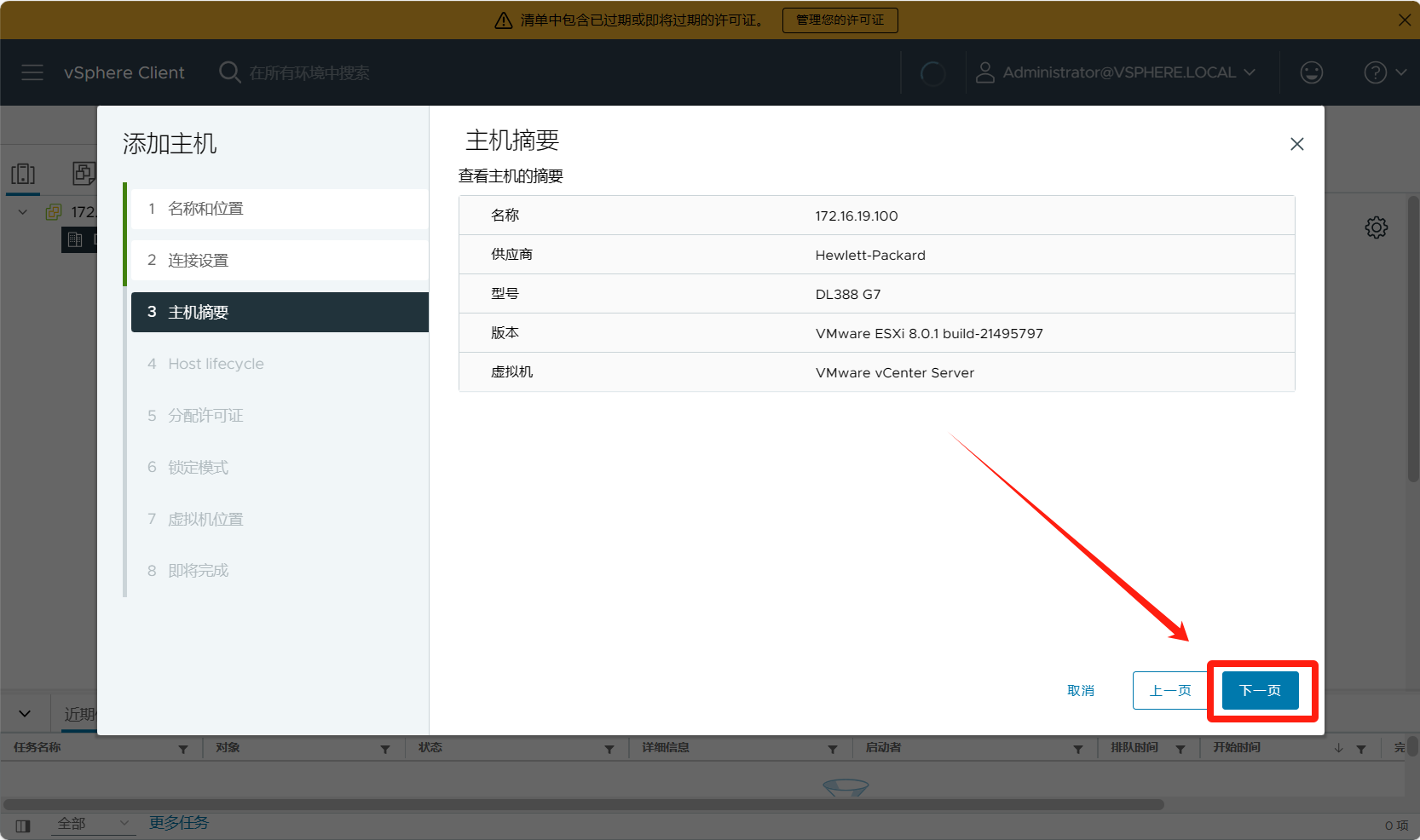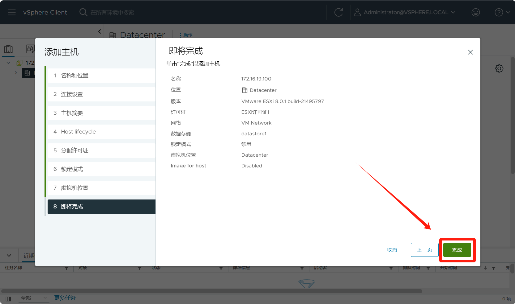 等待下方进度条完成后,ESXI主机就已经添加完成了。