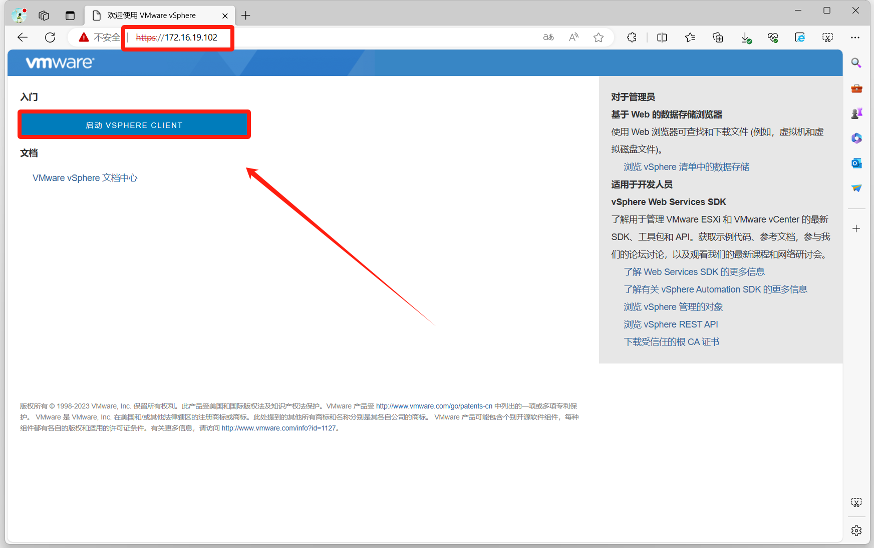 点击链接进行访问,点击启动 VSPHERE CLIENT。