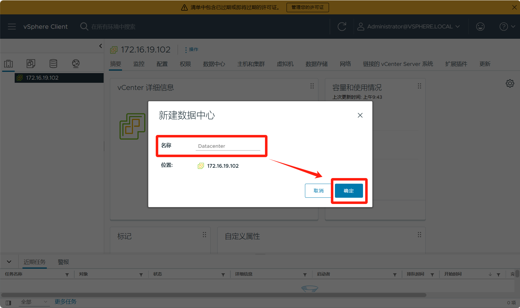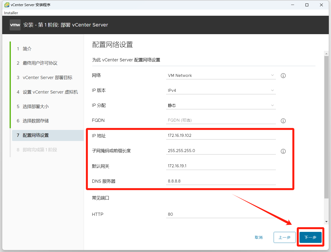 IP地址:172.16.19.102(设置vCenter Server虚拟机的IP地址)