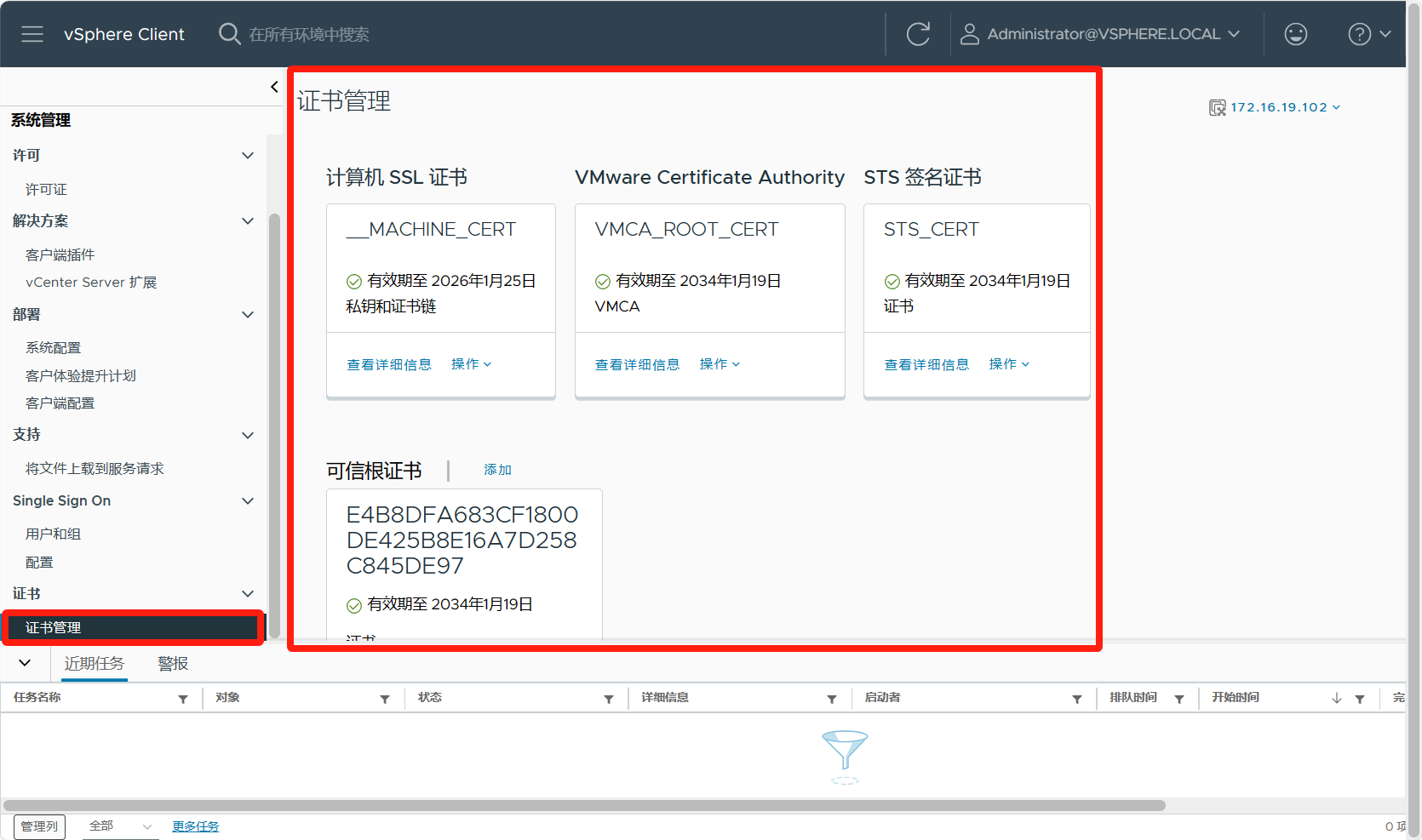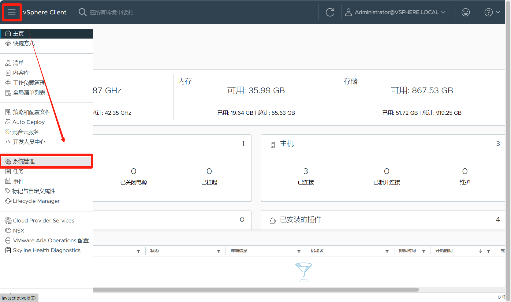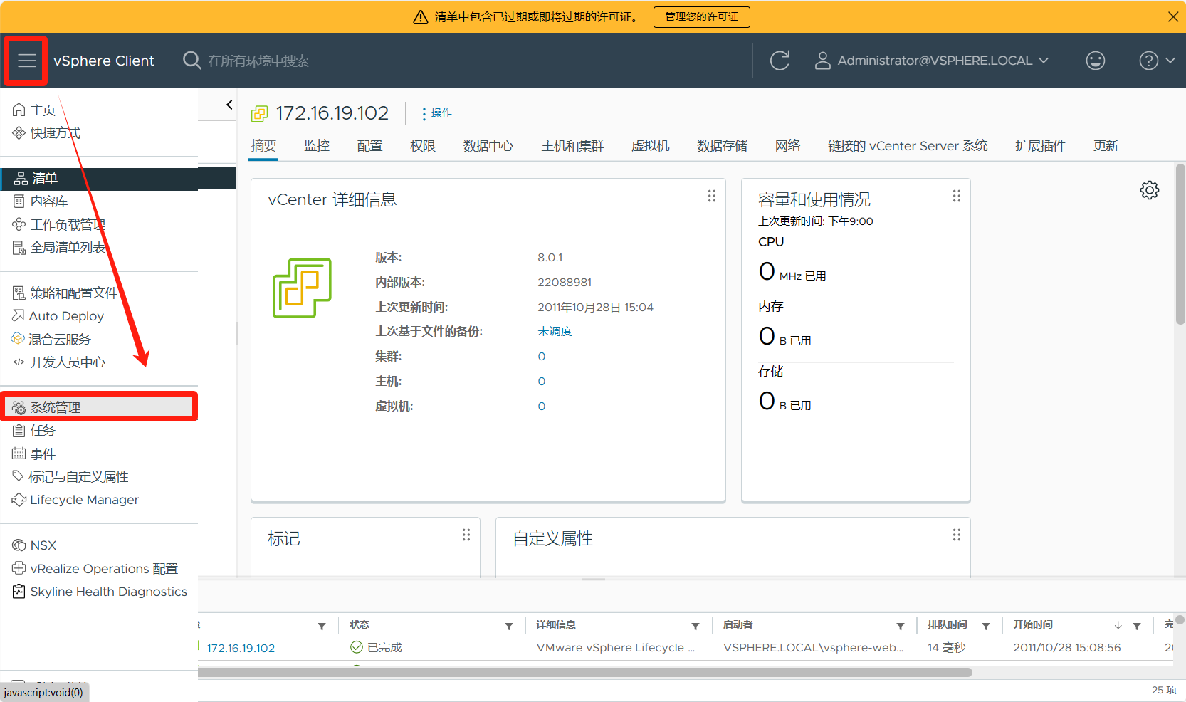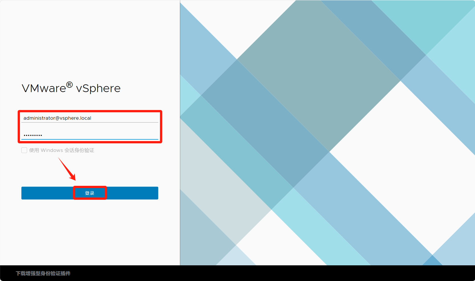 账号:administrator@vsphere.local(如果绑定了域名就把vsphere.local替换成你的域名)