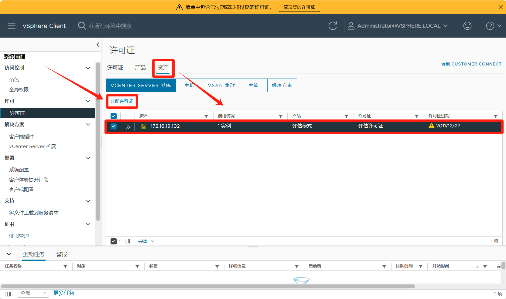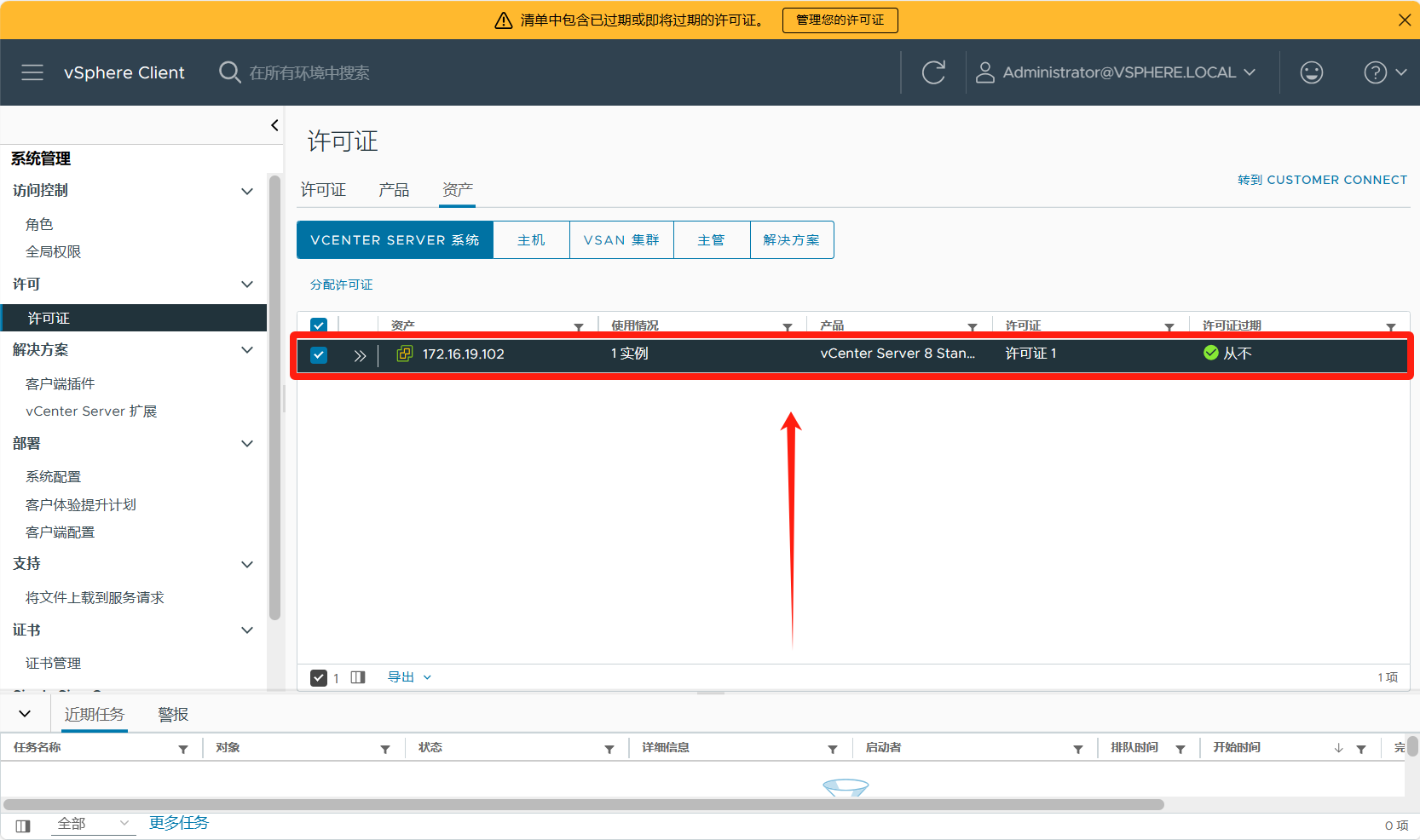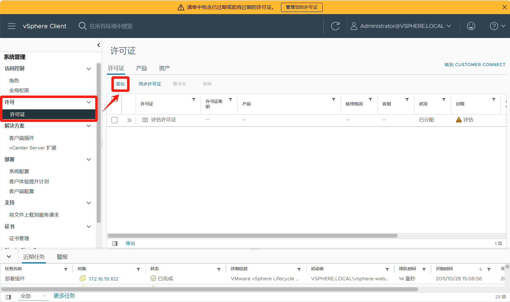 回到许可证页面可以看到评估许可证已经消失,许可证列表内只剩一个永久许可证了。
