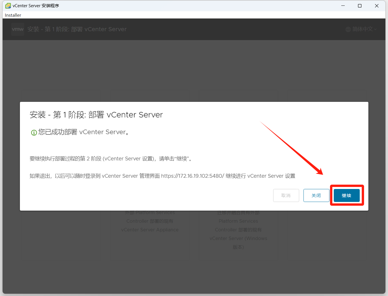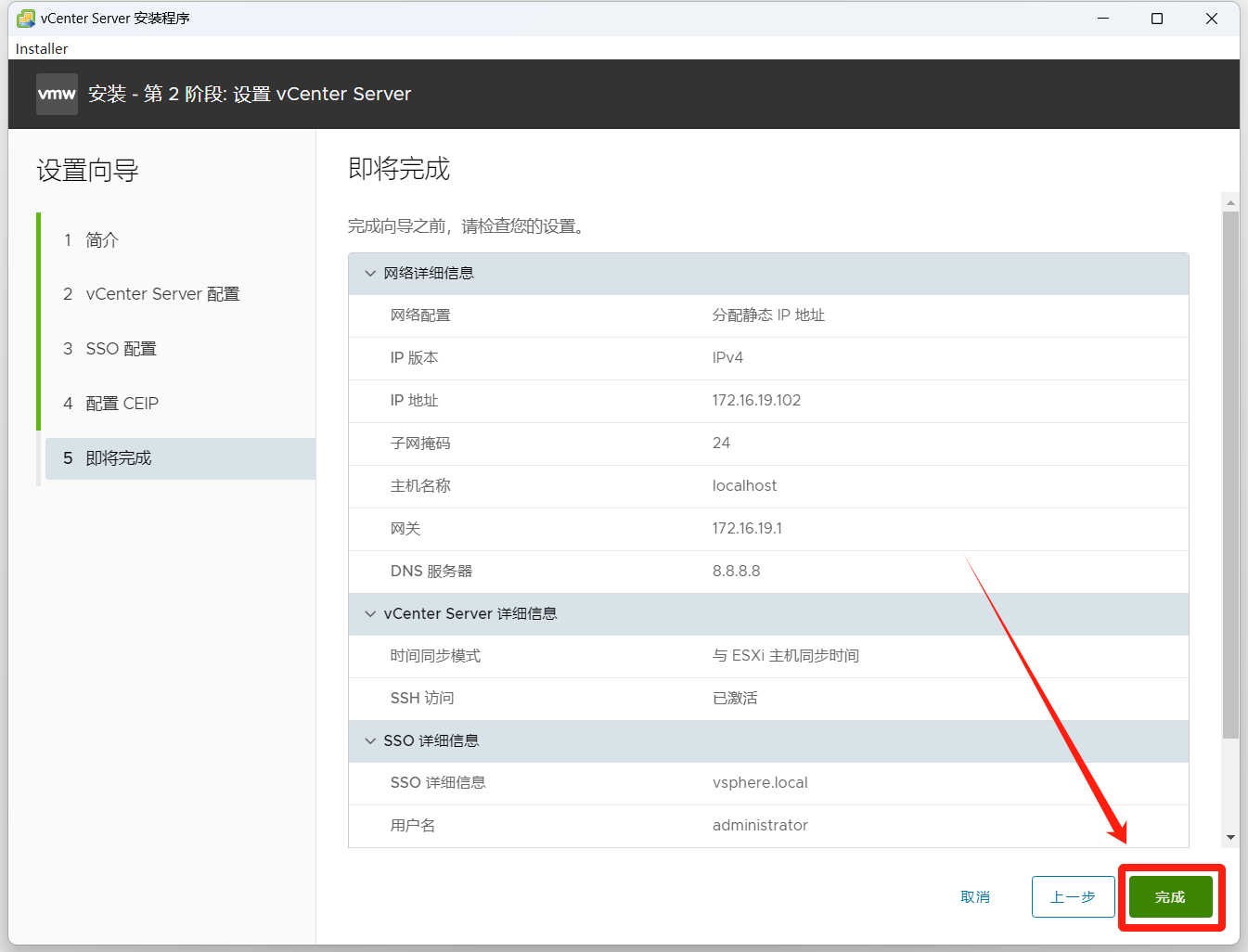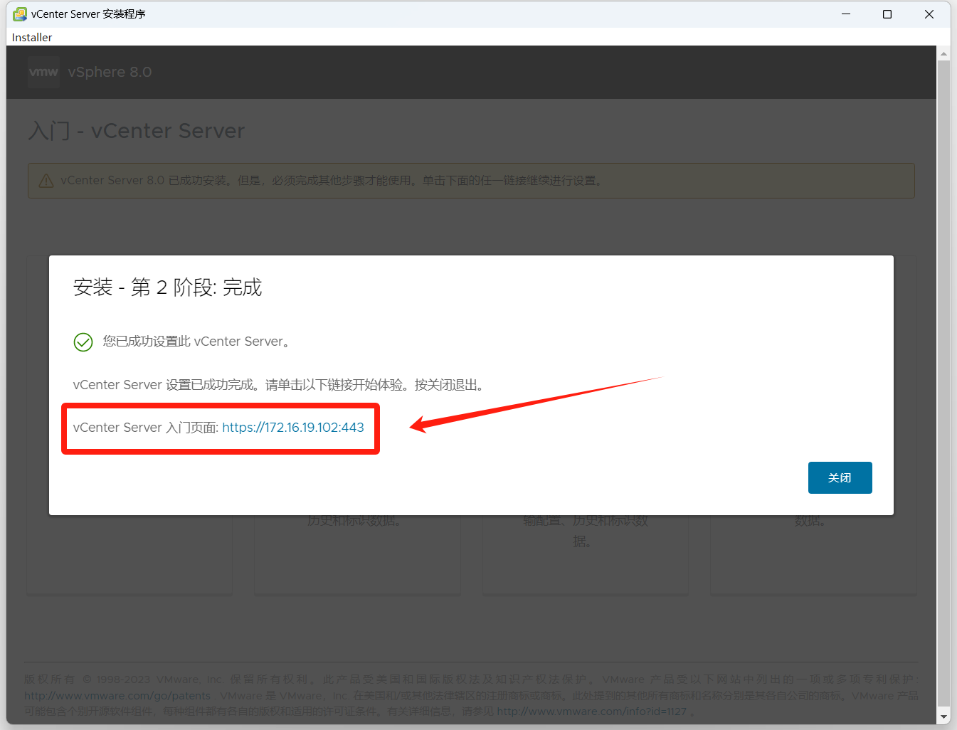 安装完成,点击下面的链接可以直接访问Vcenter Server。