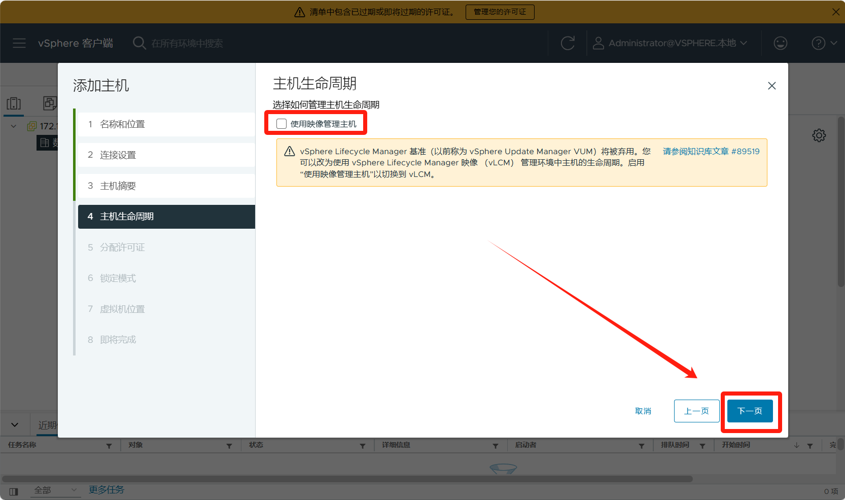 (这项为利用vLCM管理主机,但很快就会被淘汰。)