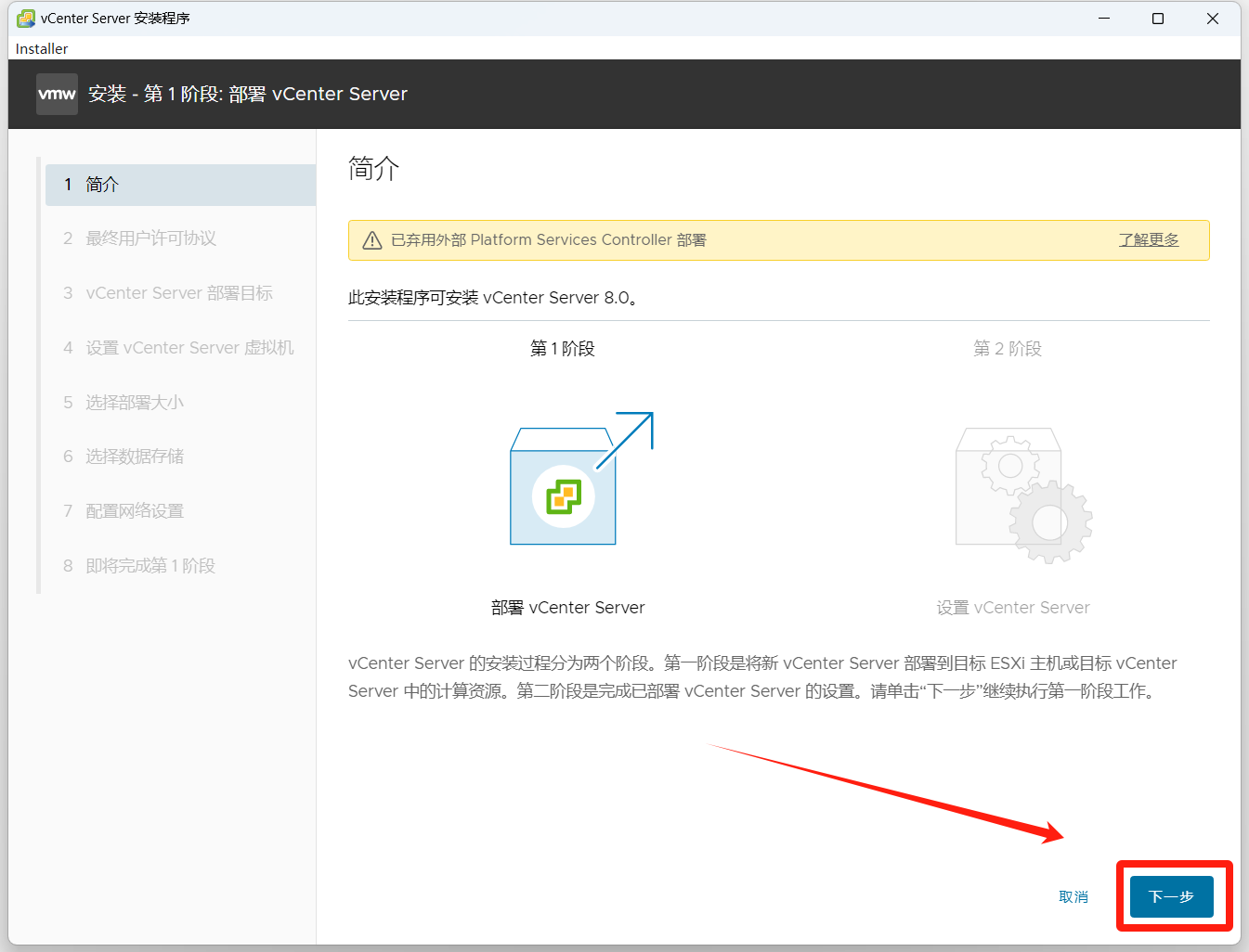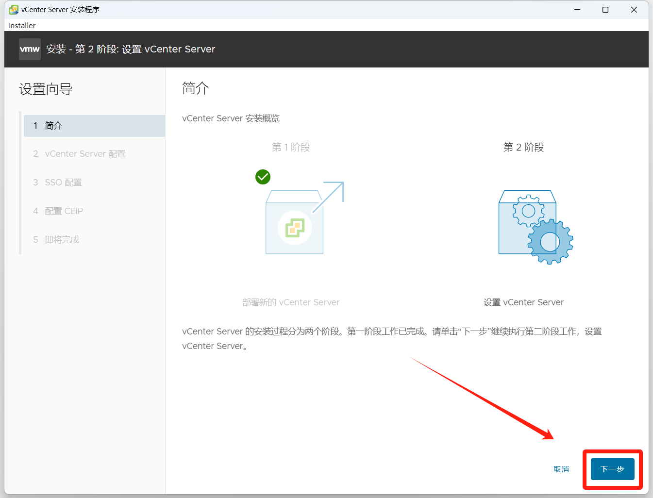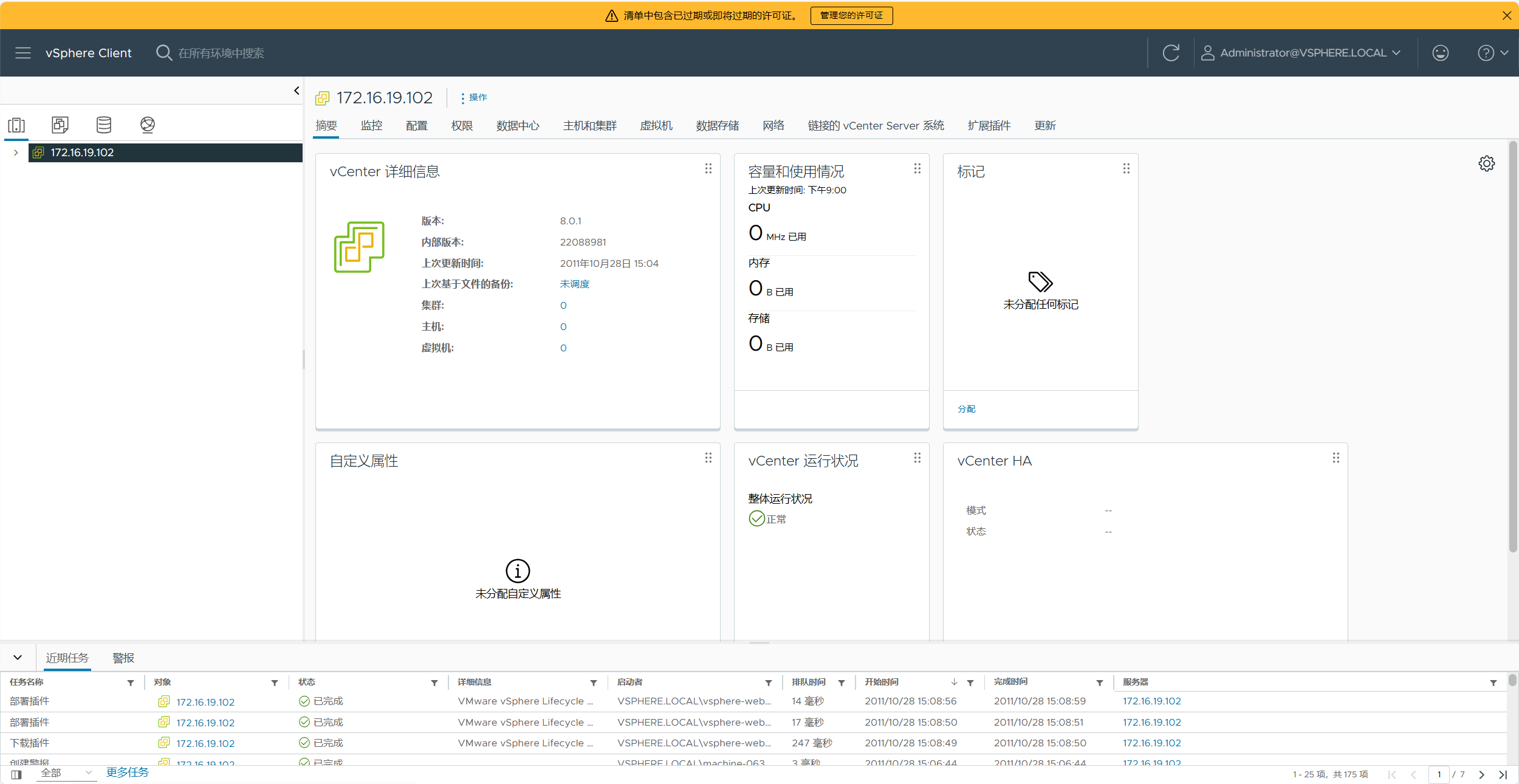 在账号、密码验证无误后将会跳转到vCenter Server虚拟机设置