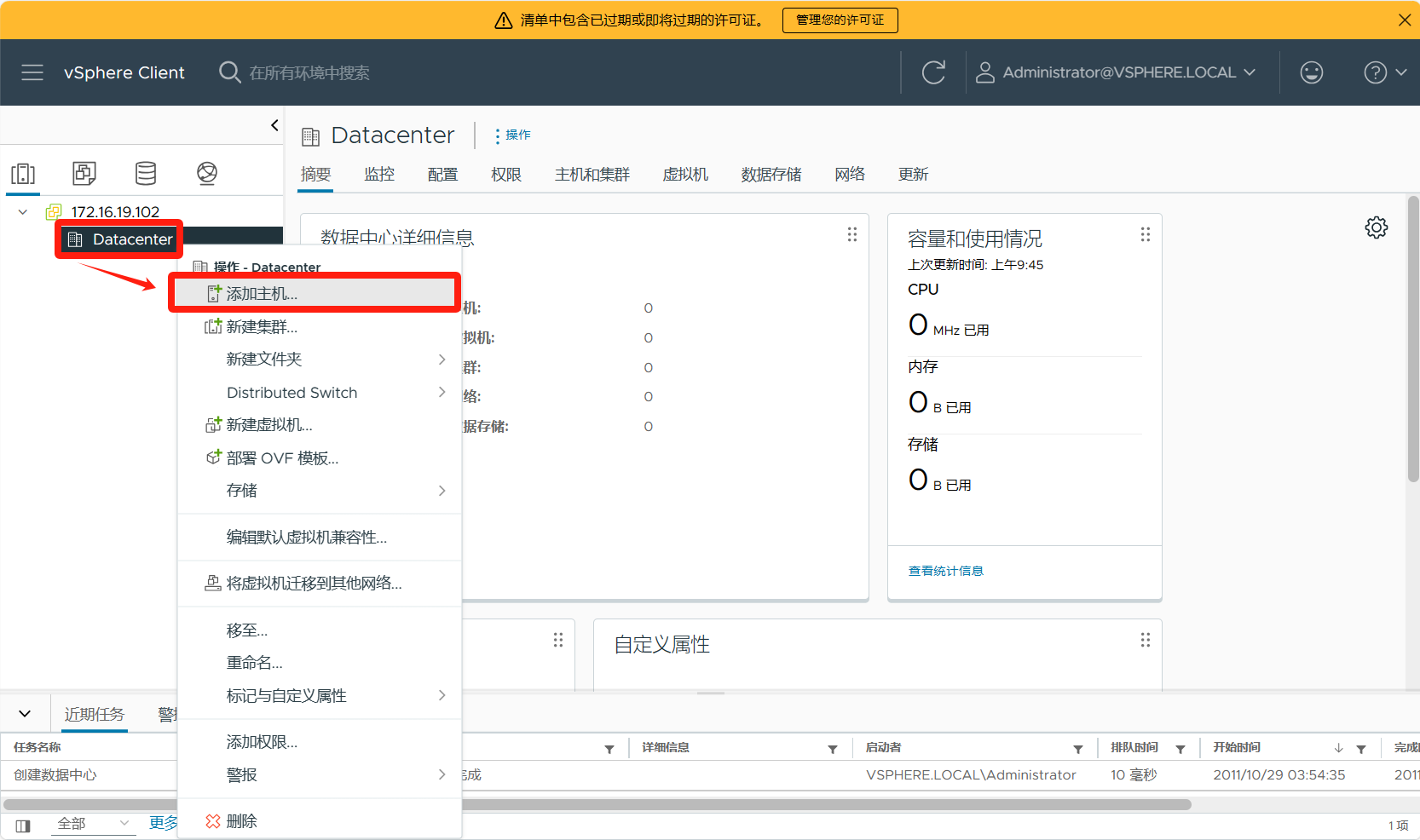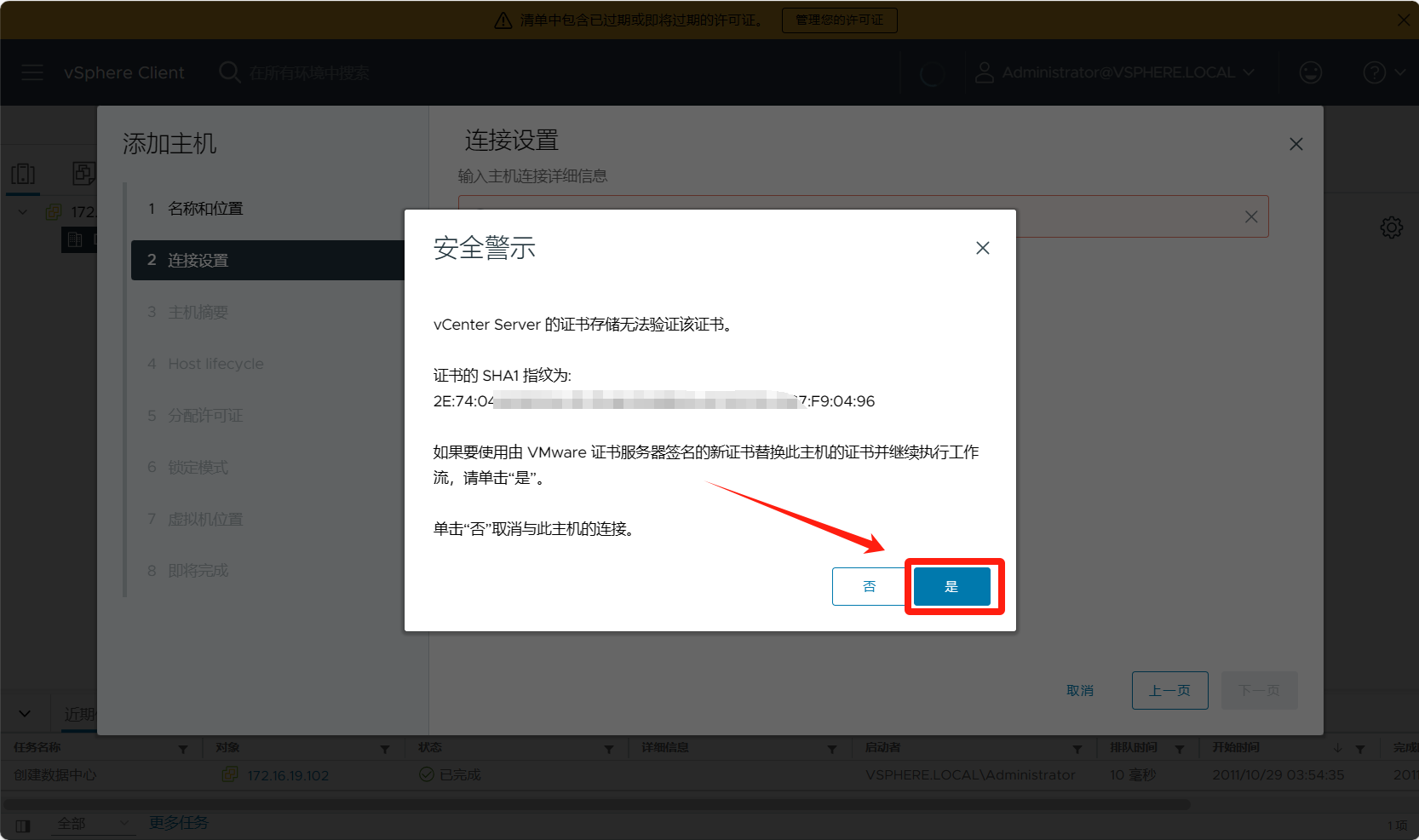 继续重复步骤,添加其他ESXI主机到vCenter Server。