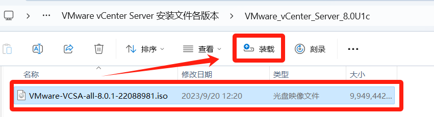 将下载的VMware_vCenter_Server_8.0U1c文件解压打开,将里面的镜像文件选择挂载或者解压缩。