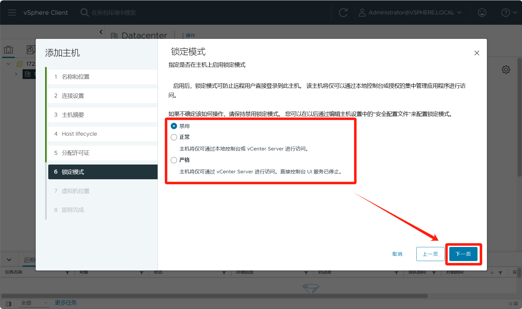 锁定模式看你们公司的严格模式,自行选择,演示选择默认的禁用。