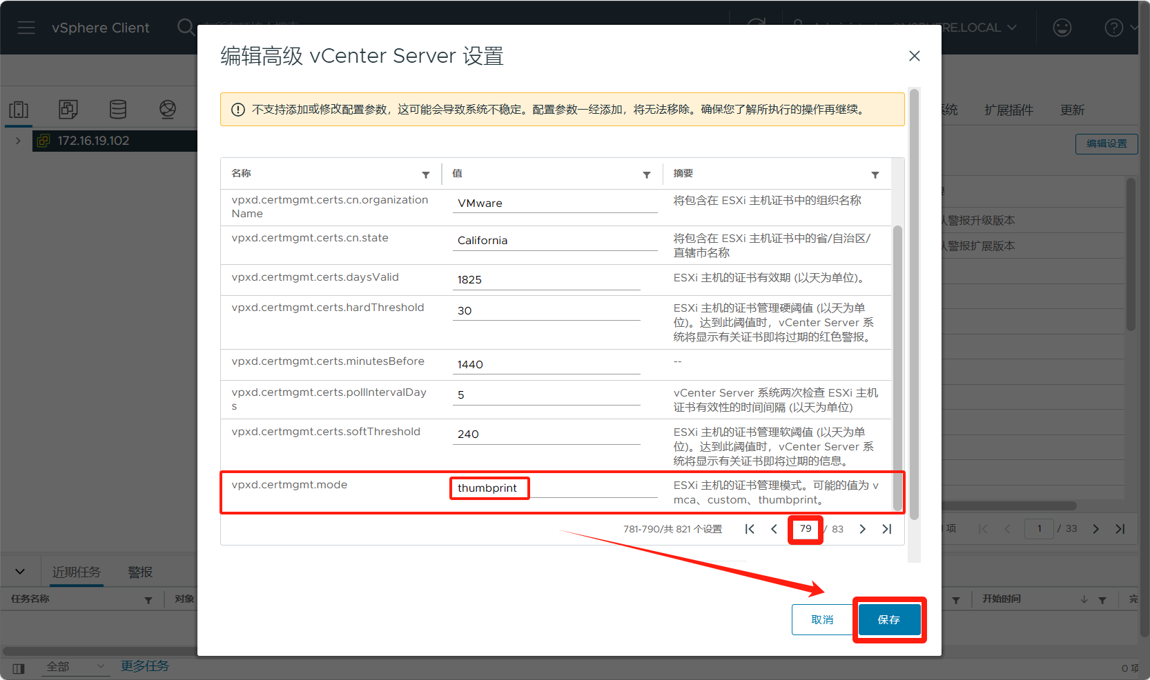 点击vCenter Server主机--配置--高级设置--编辑设置。
