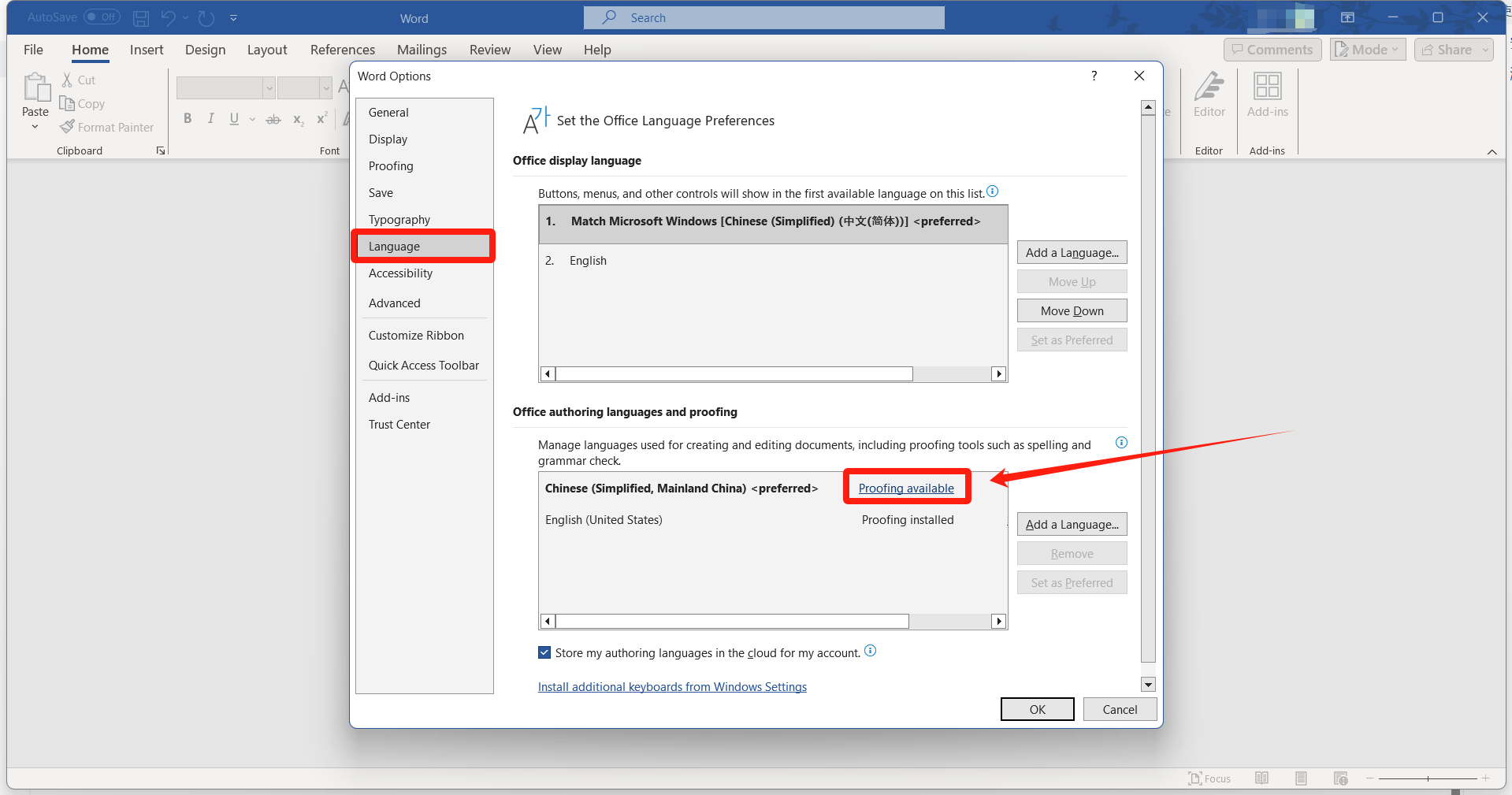 点击Language--Office authoring languages and proofing--Proofing available。