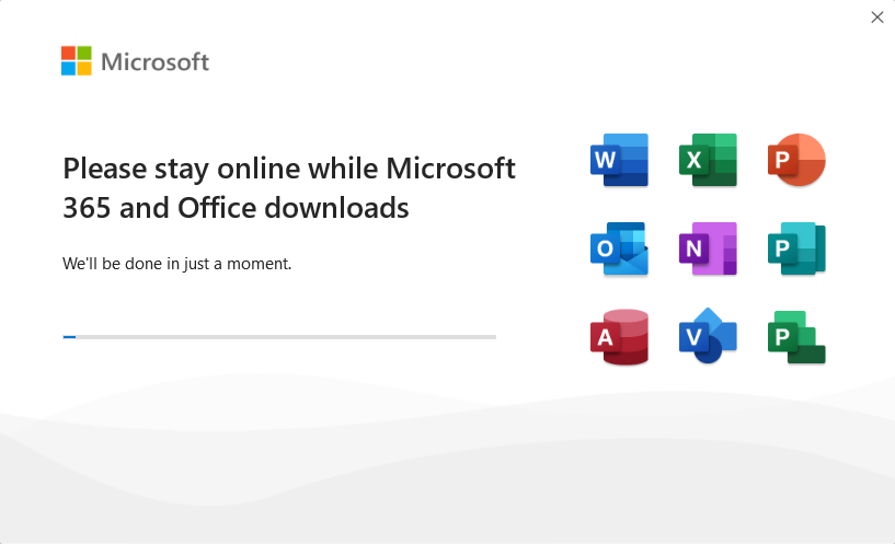 等待Microsoft 365 下载完成