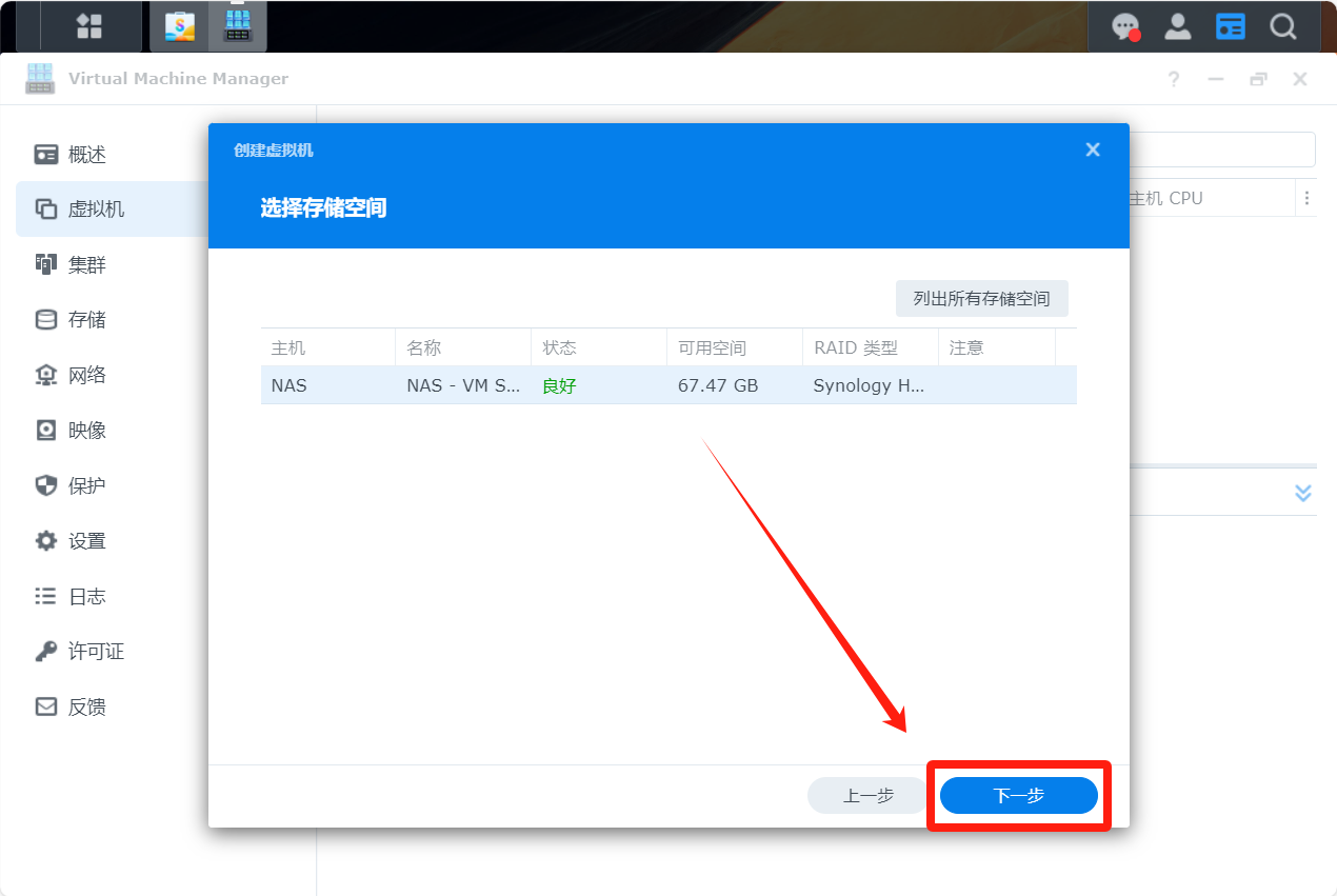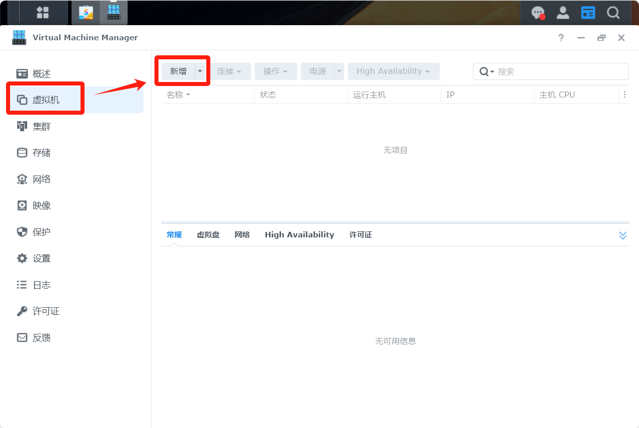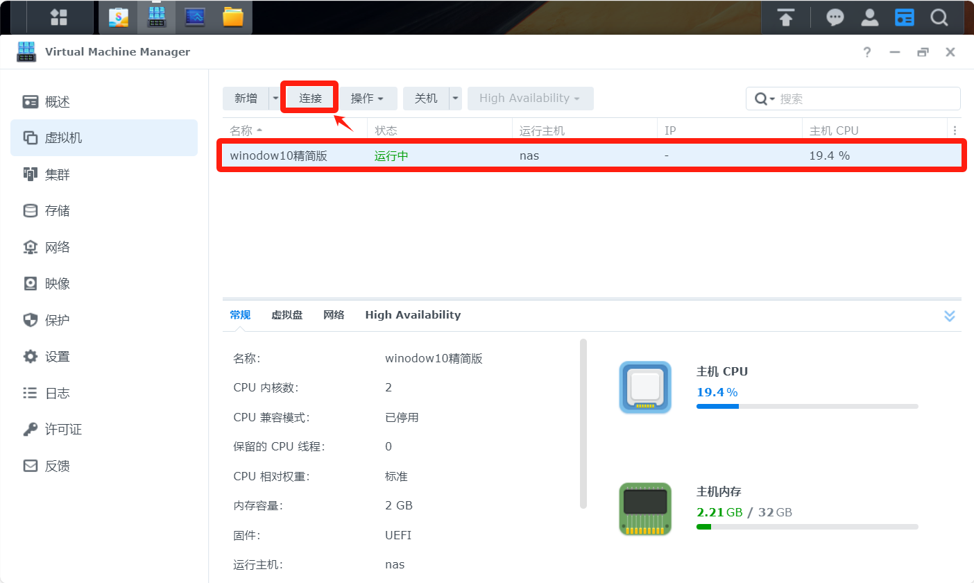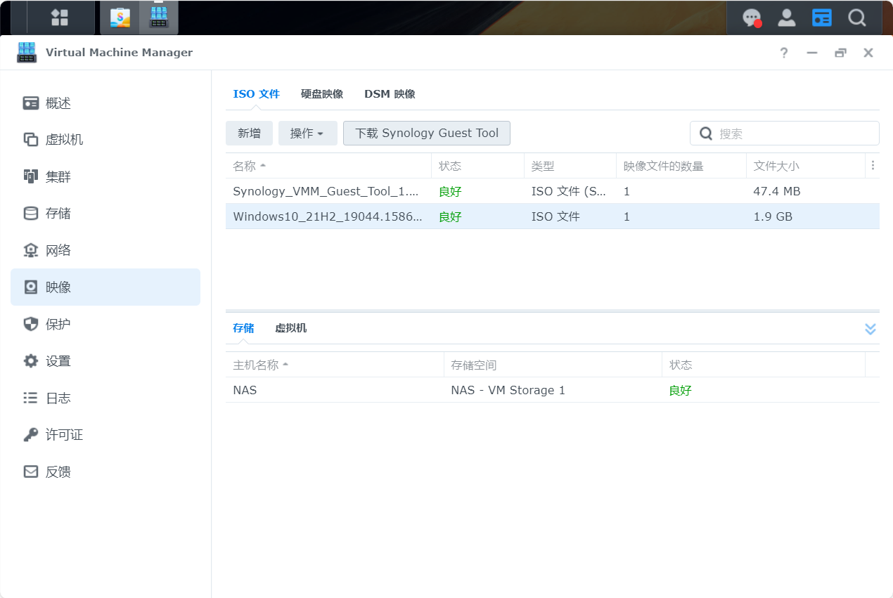 可集中管理和监控由多台 Synology NAS 服务器组成的集群中的多个虚拟机实例