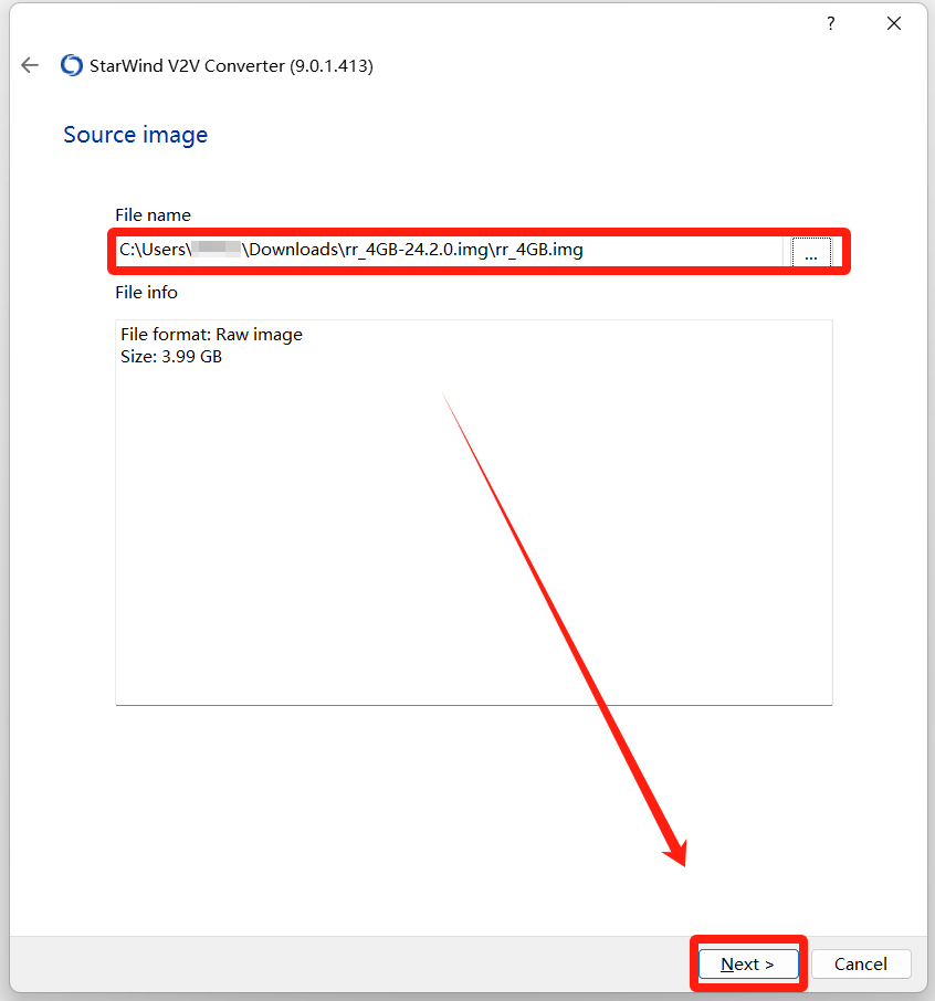选择你下载的需要转换格式的黑群晖引导镜像,点击Next。