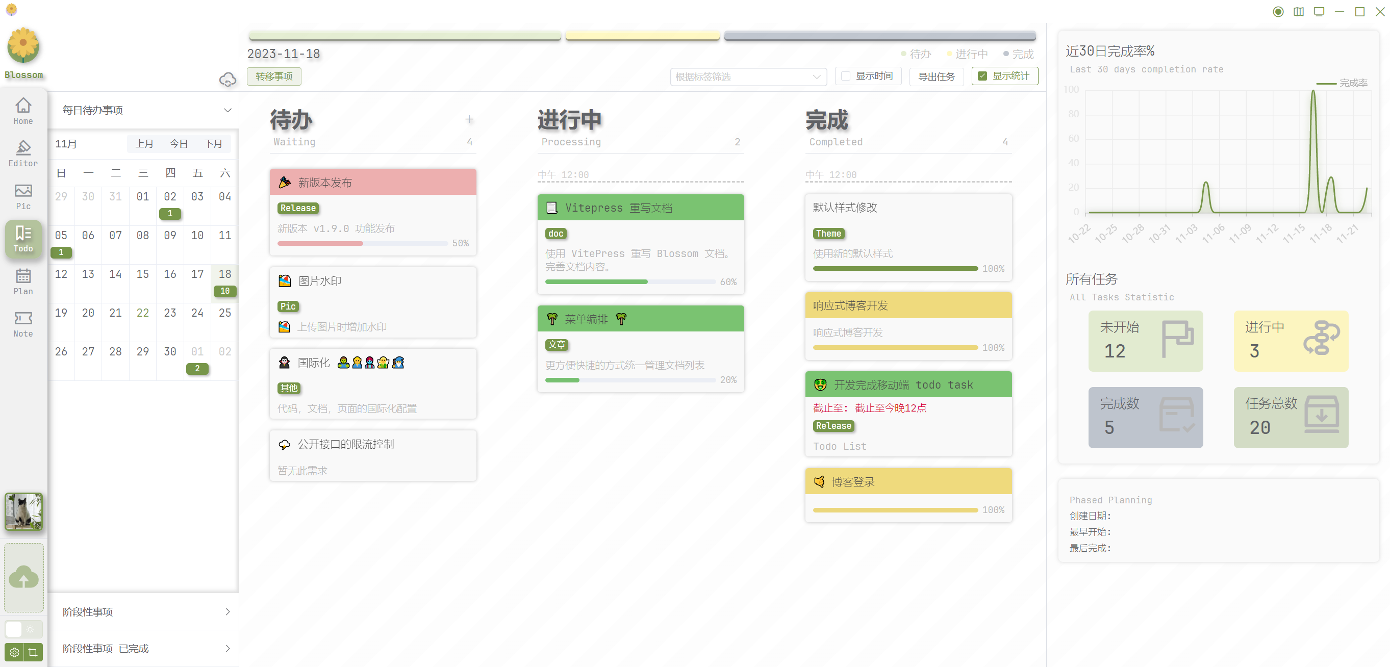 Blossom 拥有丰富的功能,不仅仅是知识管理,更是一个可以供多人同时使用的全面实用性工具。