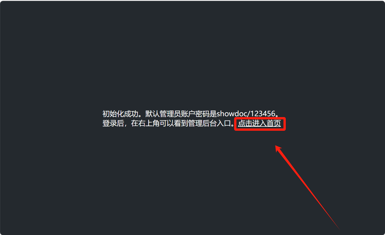 初始化成功。默认管理员账户密码是showdoc/123456。