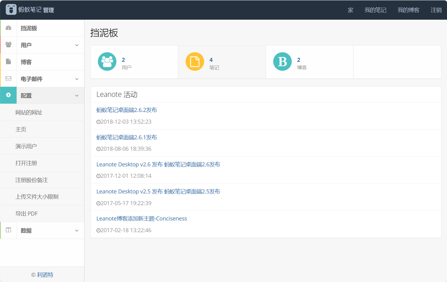 博客:发布您的作品并使Leanote成为您的个人博客。