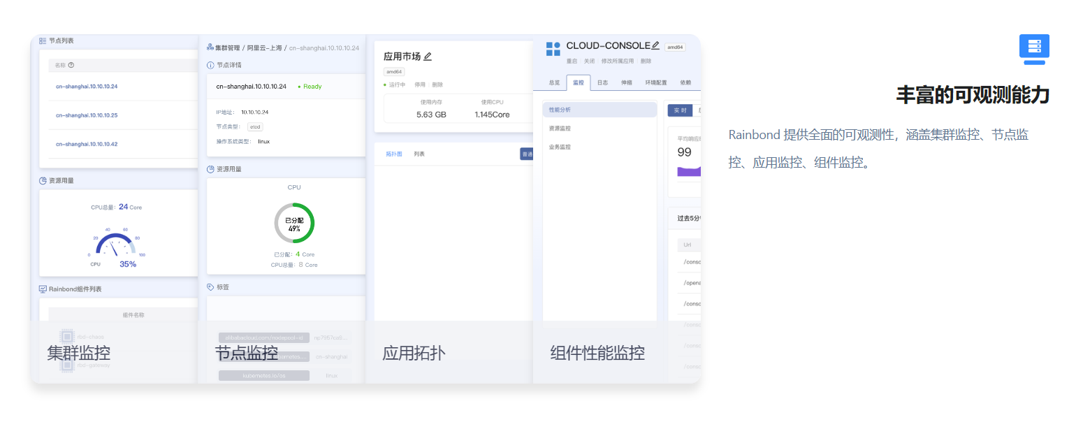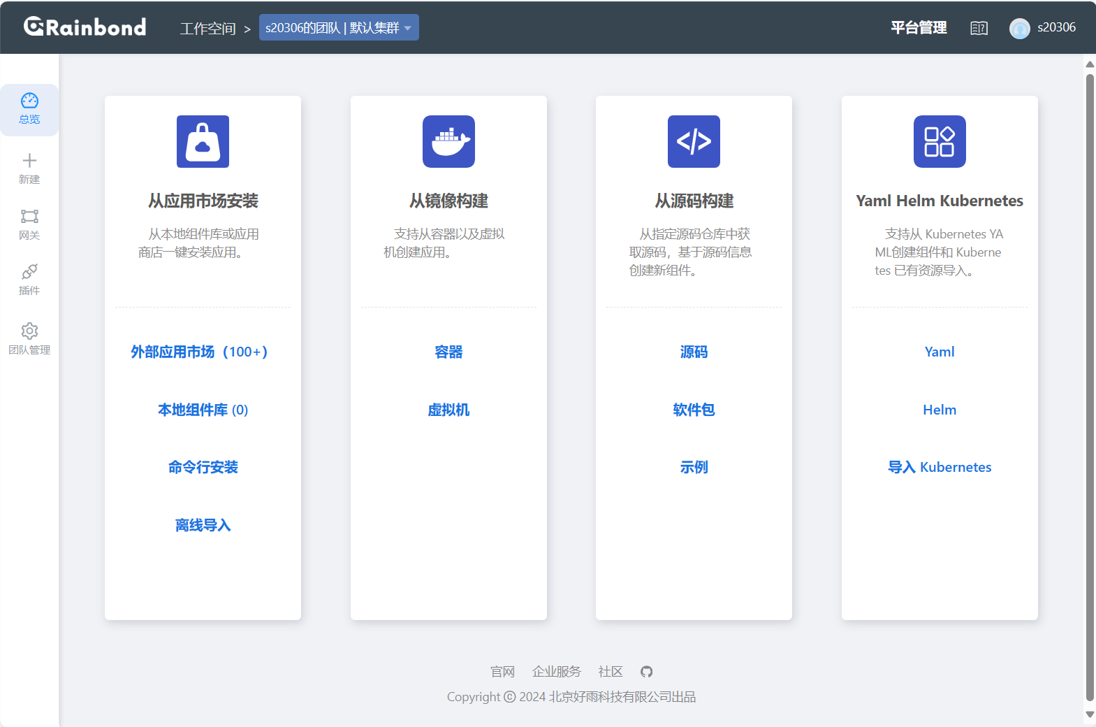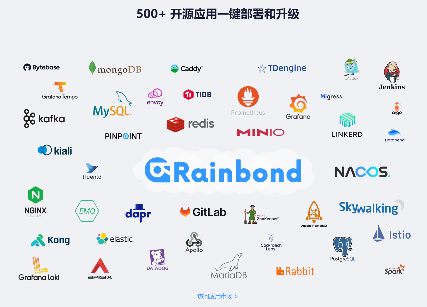 Rainbond 是一个云原生应用管理平台,使用简单,不需要懂容器、Kubernetes和底层复杂技术,支持管理多个Kubernetes集群,和管理企业应用全生命周期。主要功能包括应用开发环境、应用市场、微服务架构、应用交付、应用运维、应用级多云管理等。