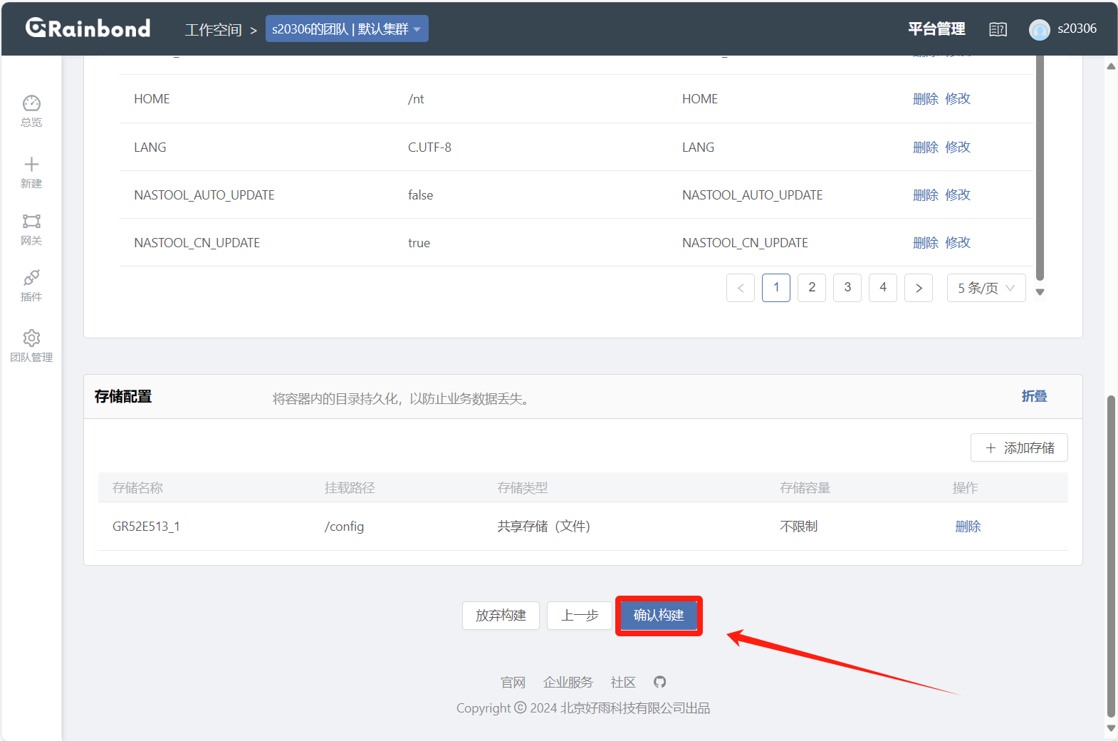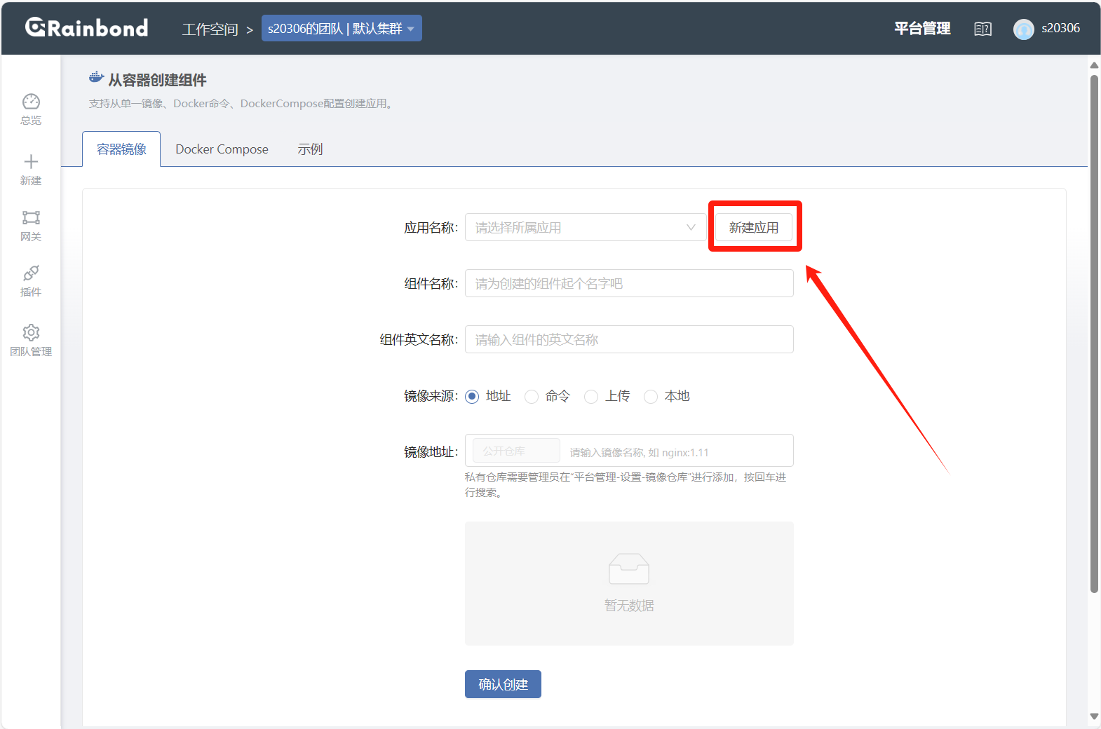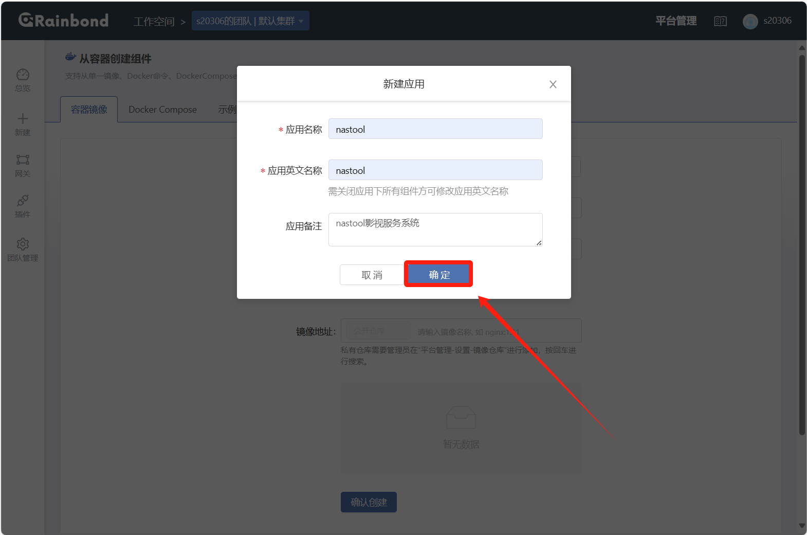 输入必要的信息,再输入创建容器需要使用的命令,点击确认创建。