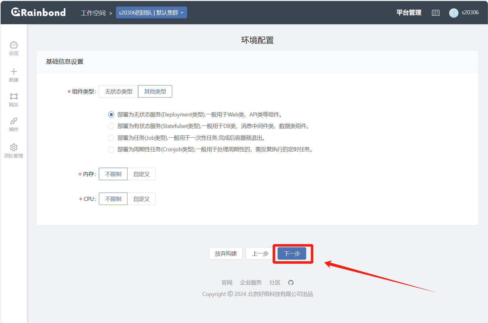 所有的服务都是在你的工作空间--团队--集群内创建。