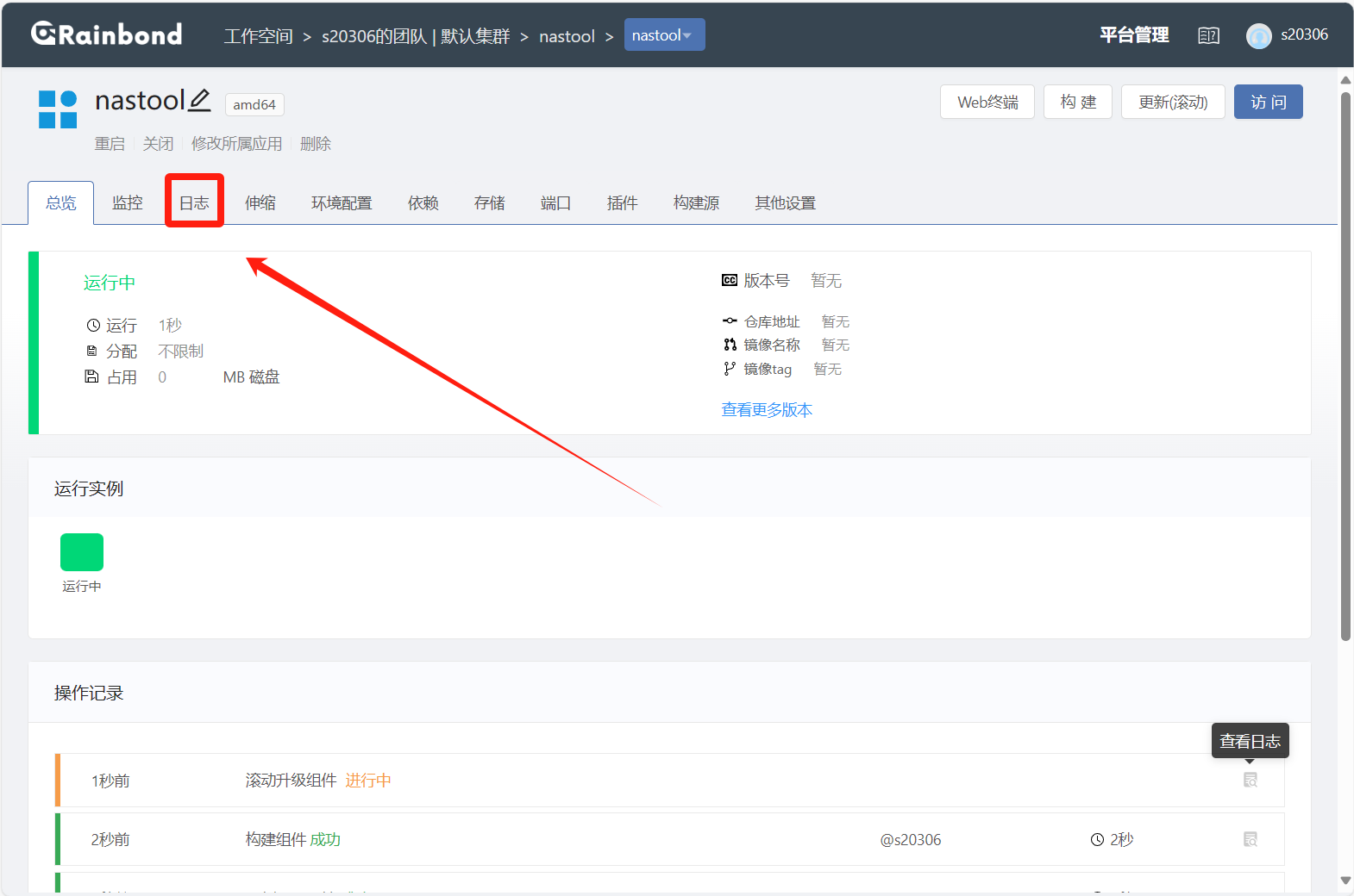 不更改就直接点击右上角访问,自动跳转到容器web页面。