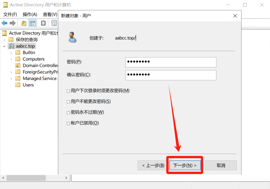 账号格式:aabcc.top\Administrator(默认是Administrator,或者你自己新建了别的管理员账户。)