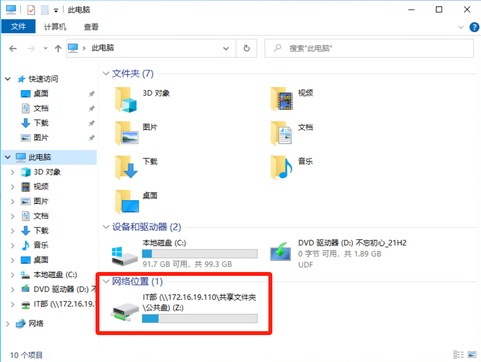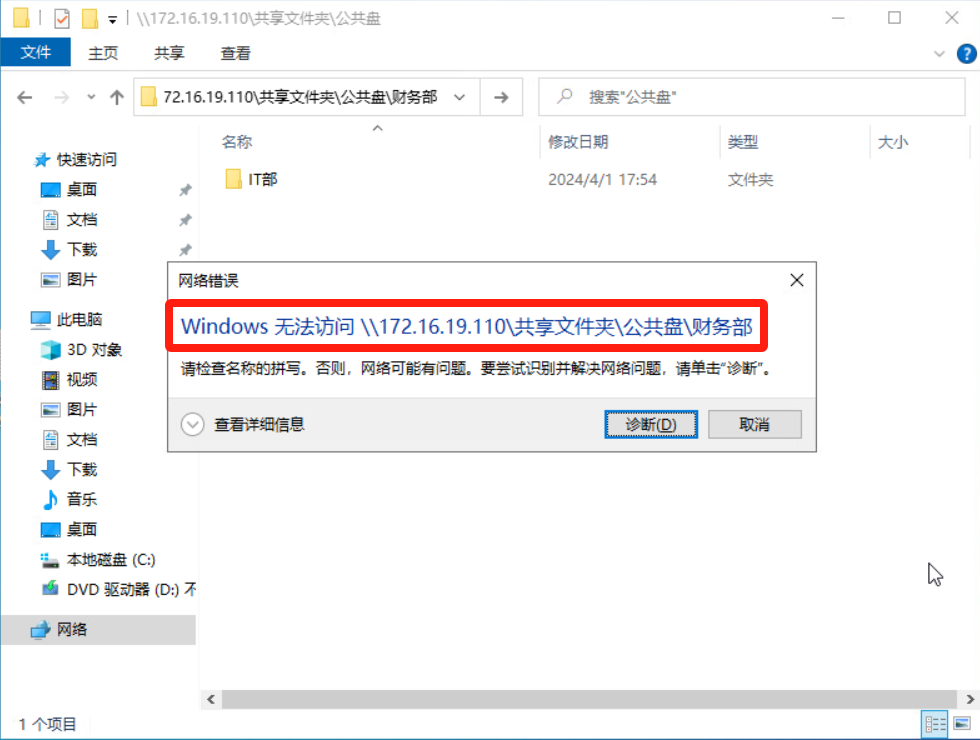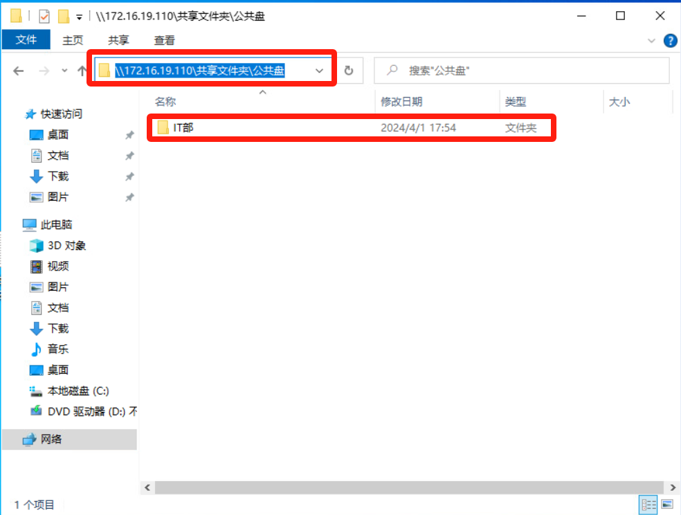 找一个域内的电脑,登录账户后,尝试访问公共盘文件夹。