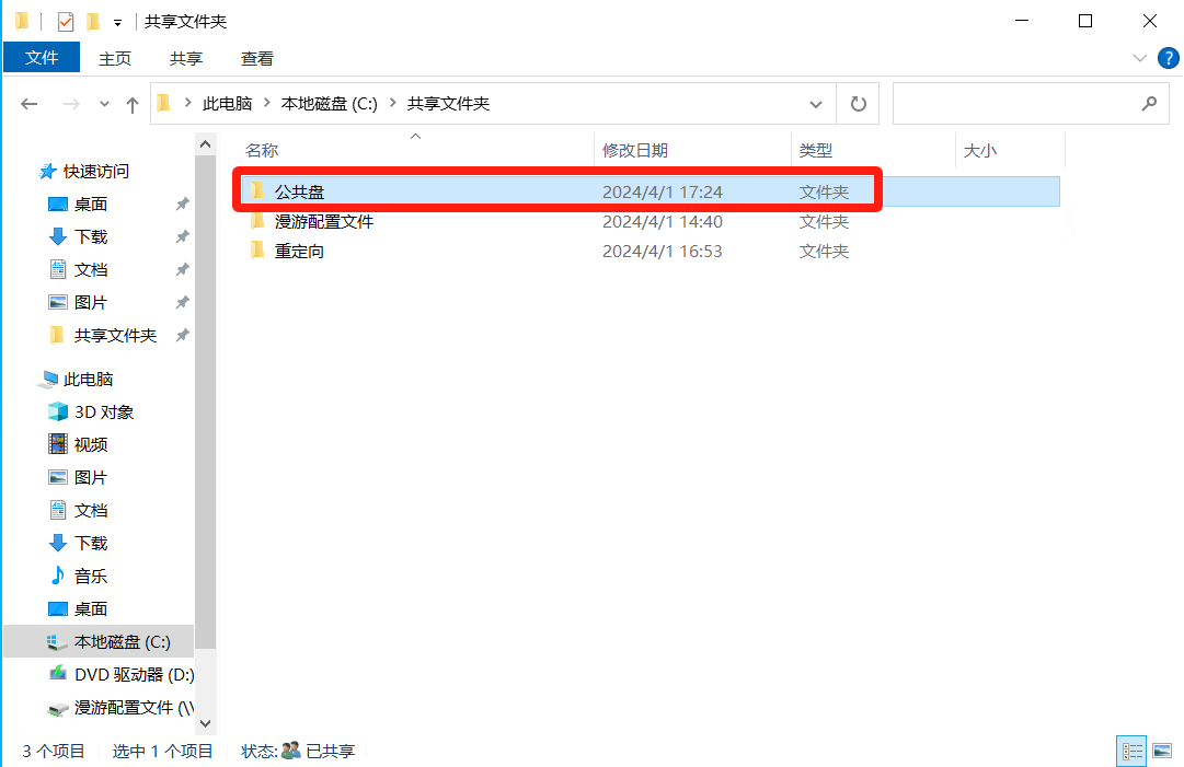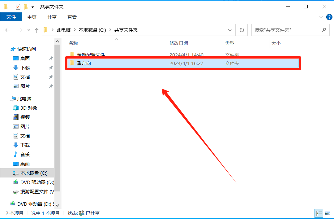 根路径:粘贴共享文件夹存放重定向文件夹的路径