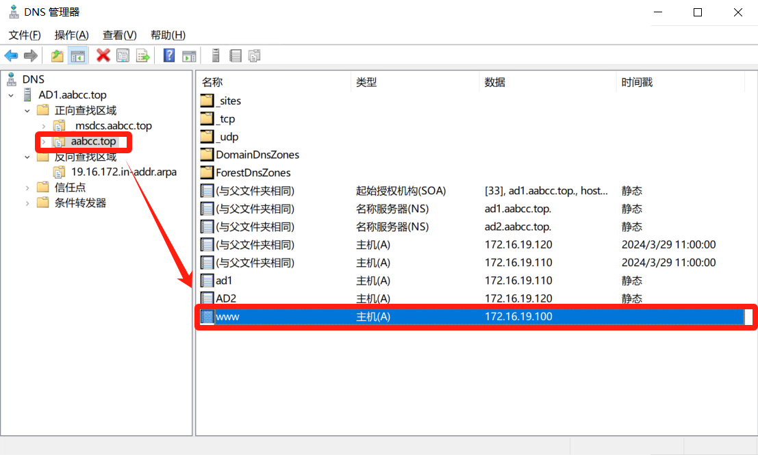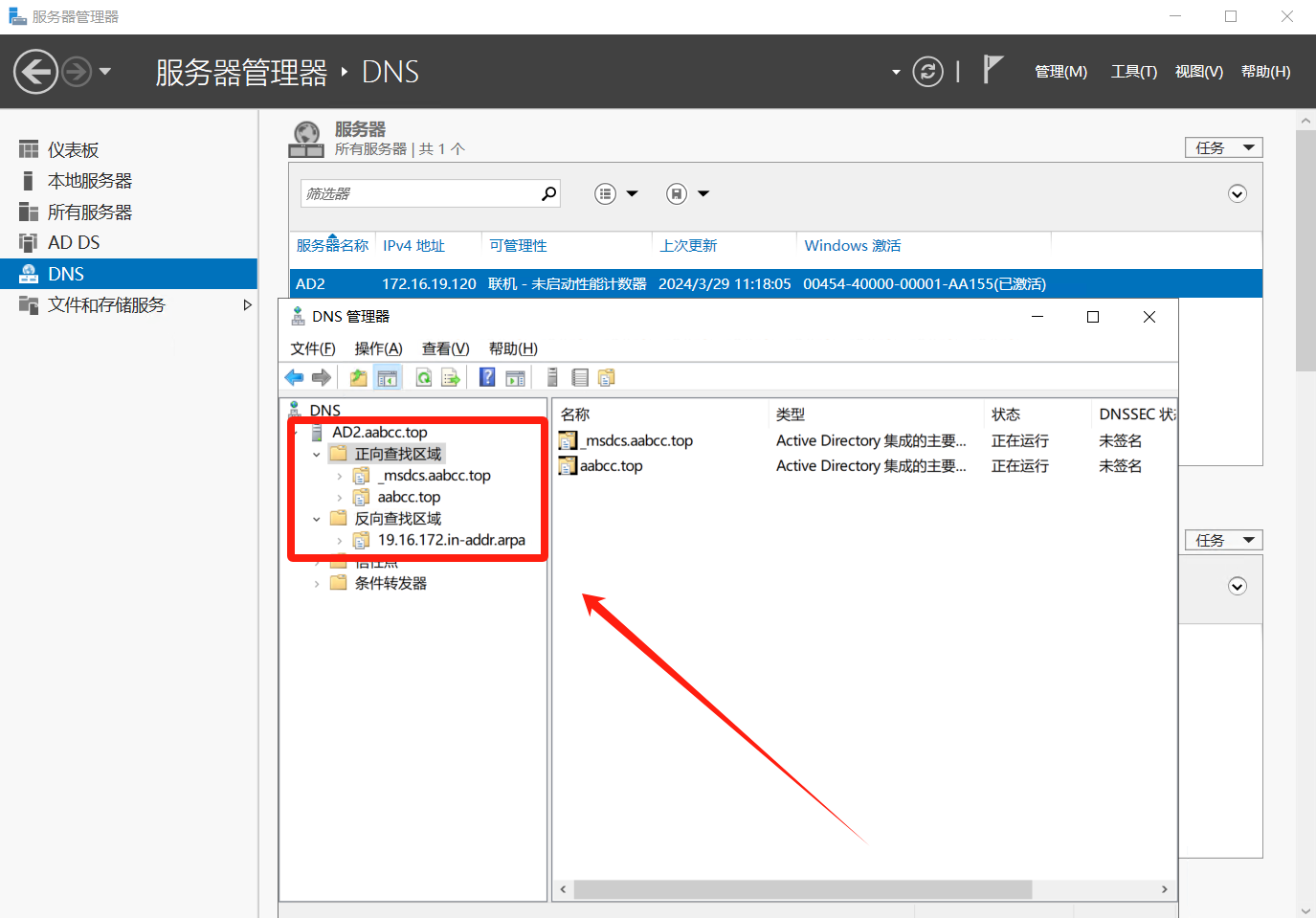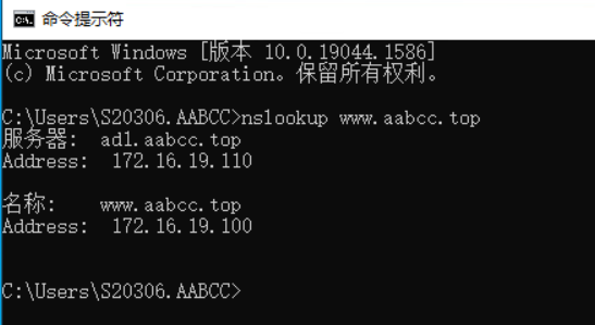 再次解析域名DNS,显示的服务器名称只是显示是AD2而已。