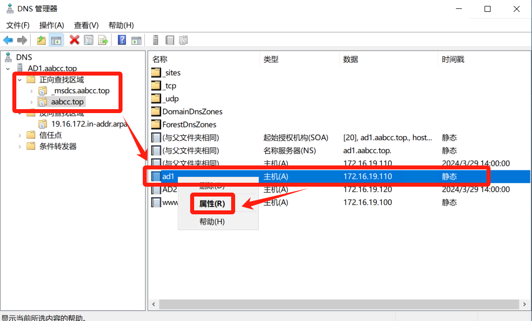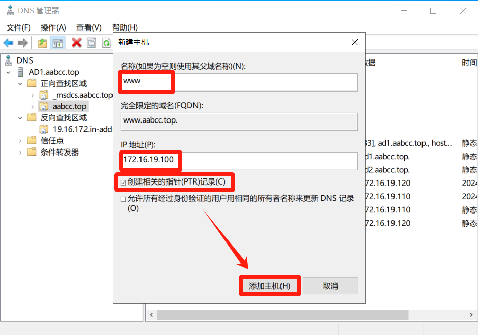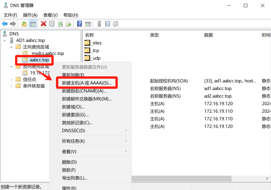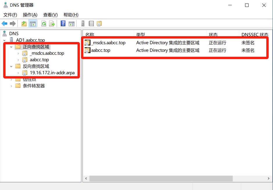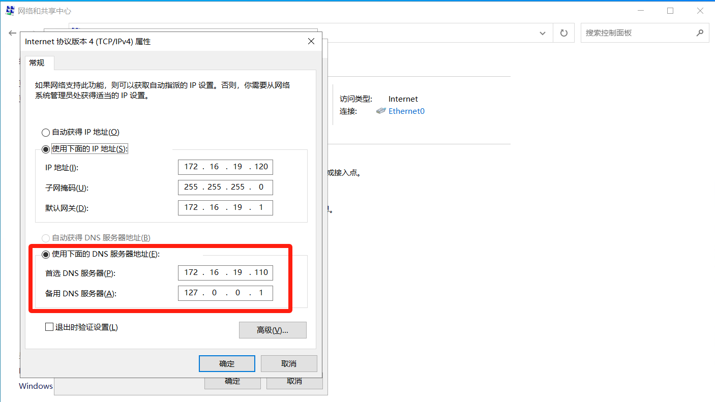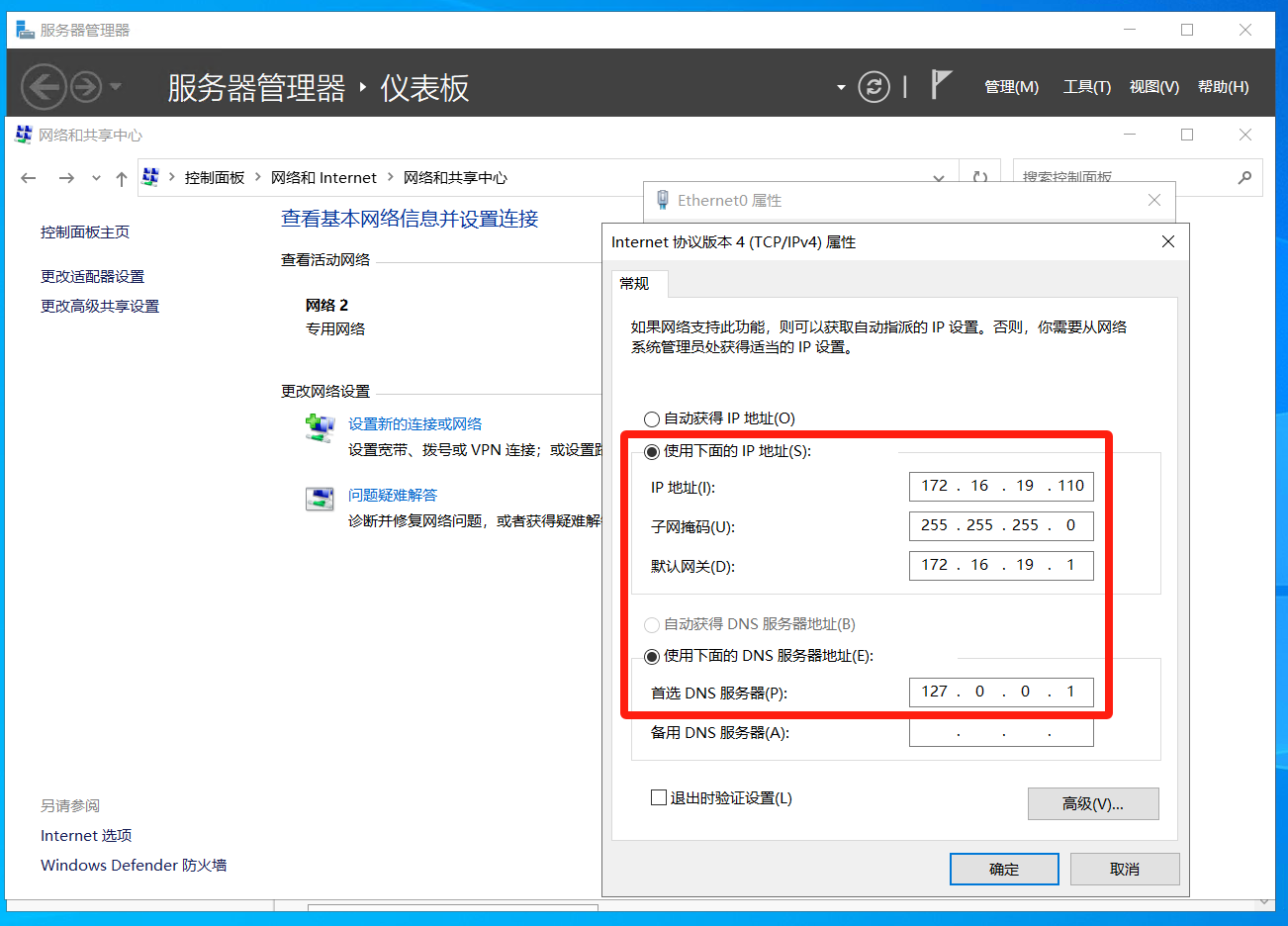 DNS服务器地址设置为127.0.0.1或主AD域控服务器的IP地址172.16.19.110