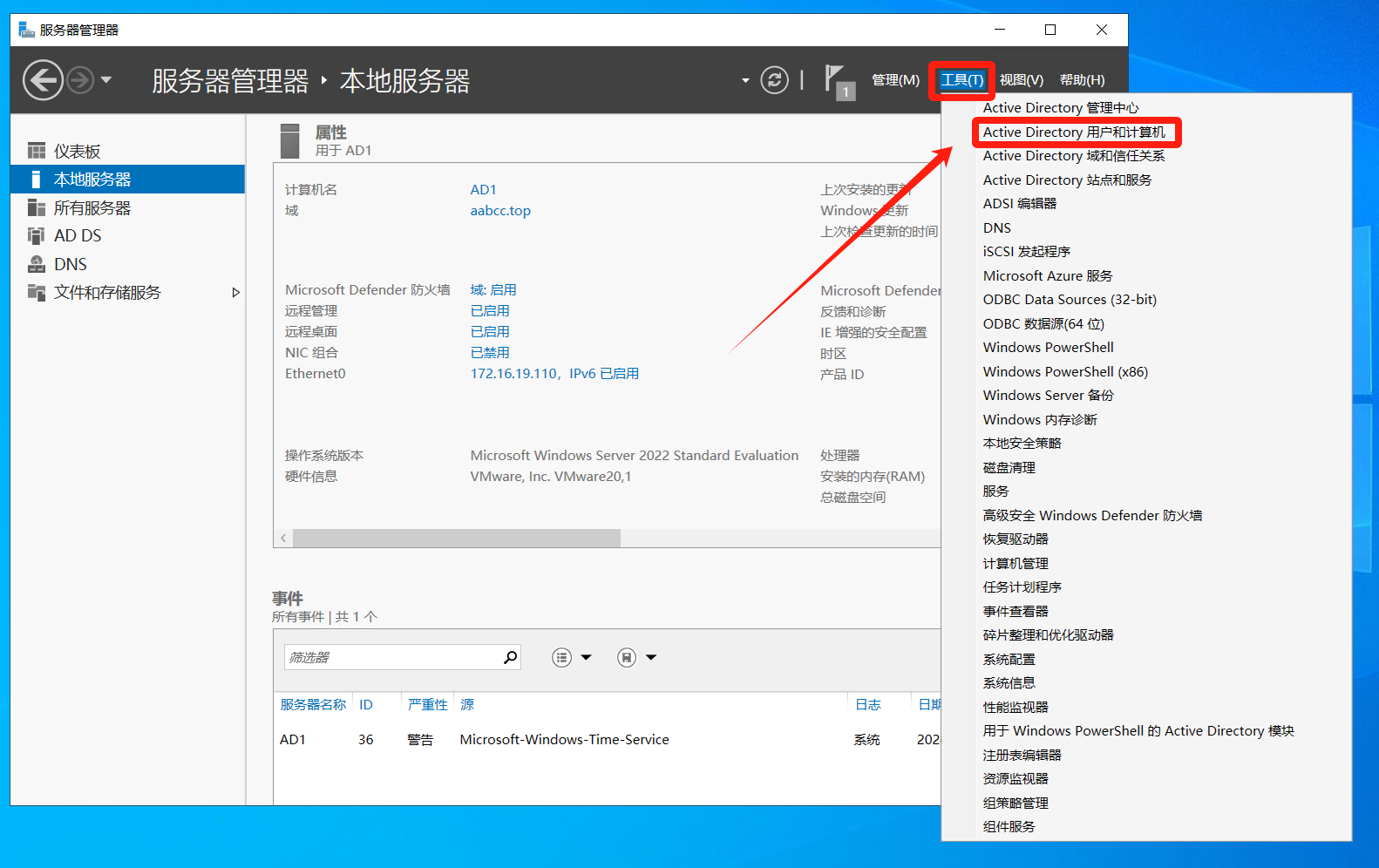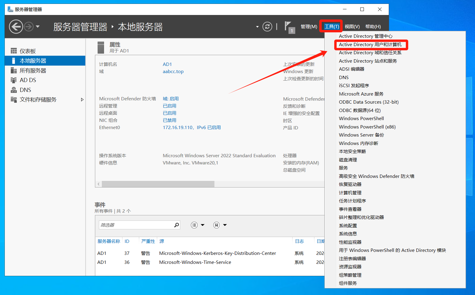 对应的工具也都已经安装上了,点击Active Directory用户和计算机