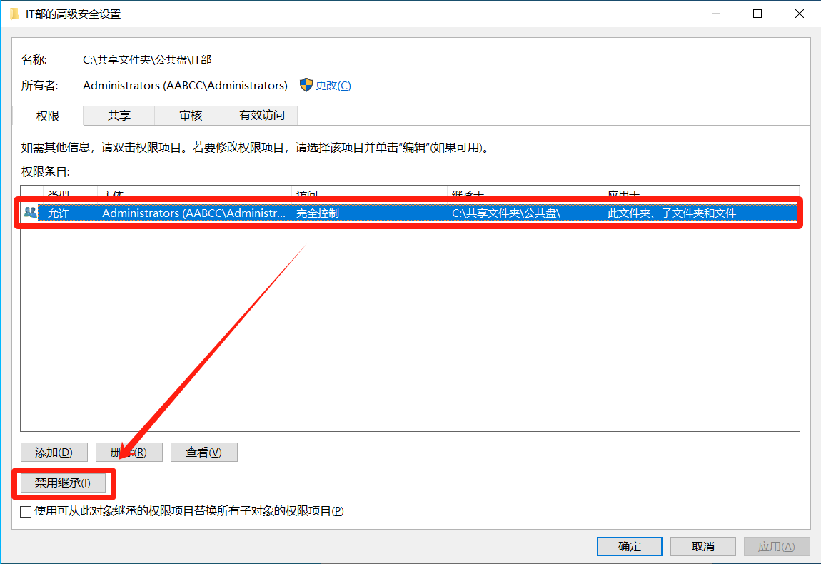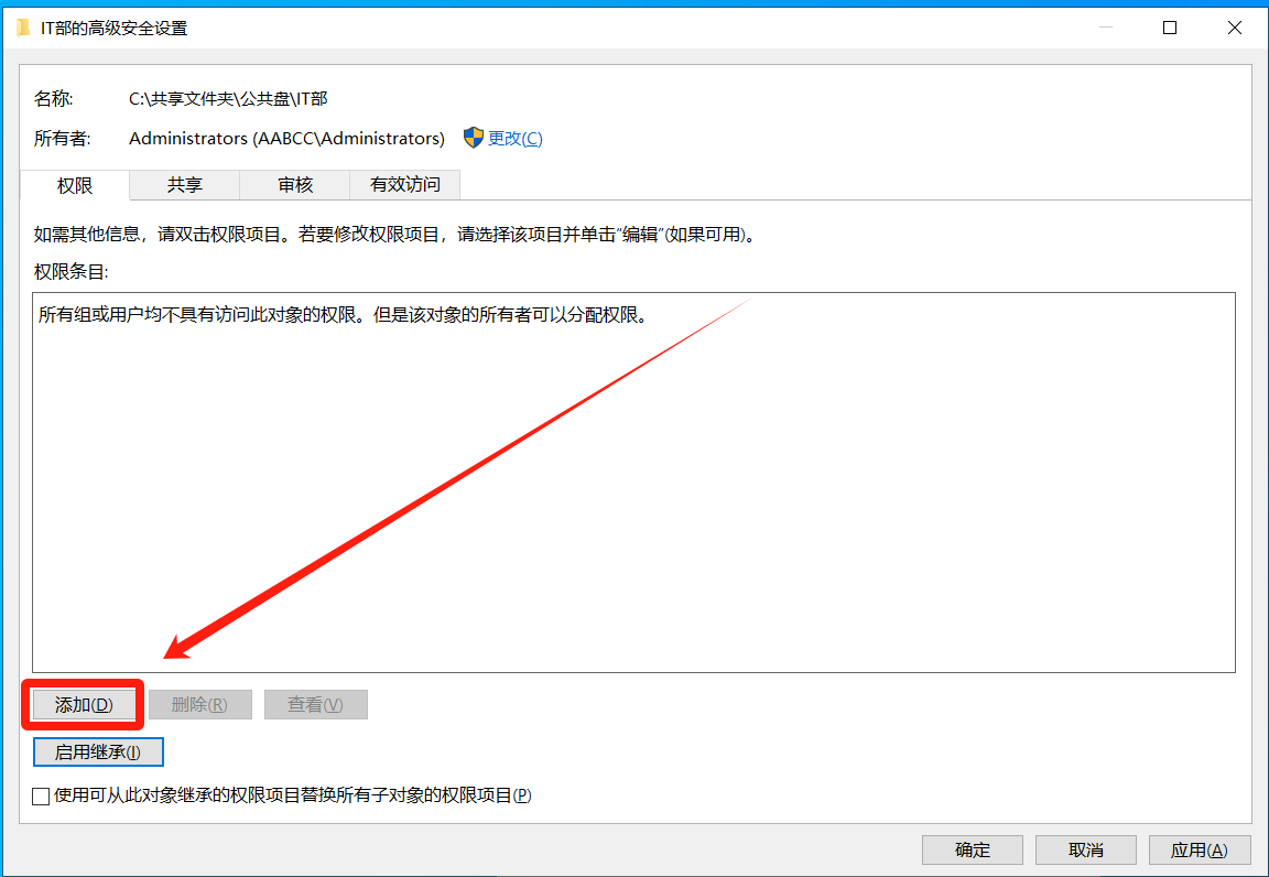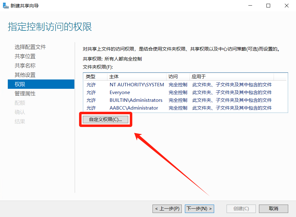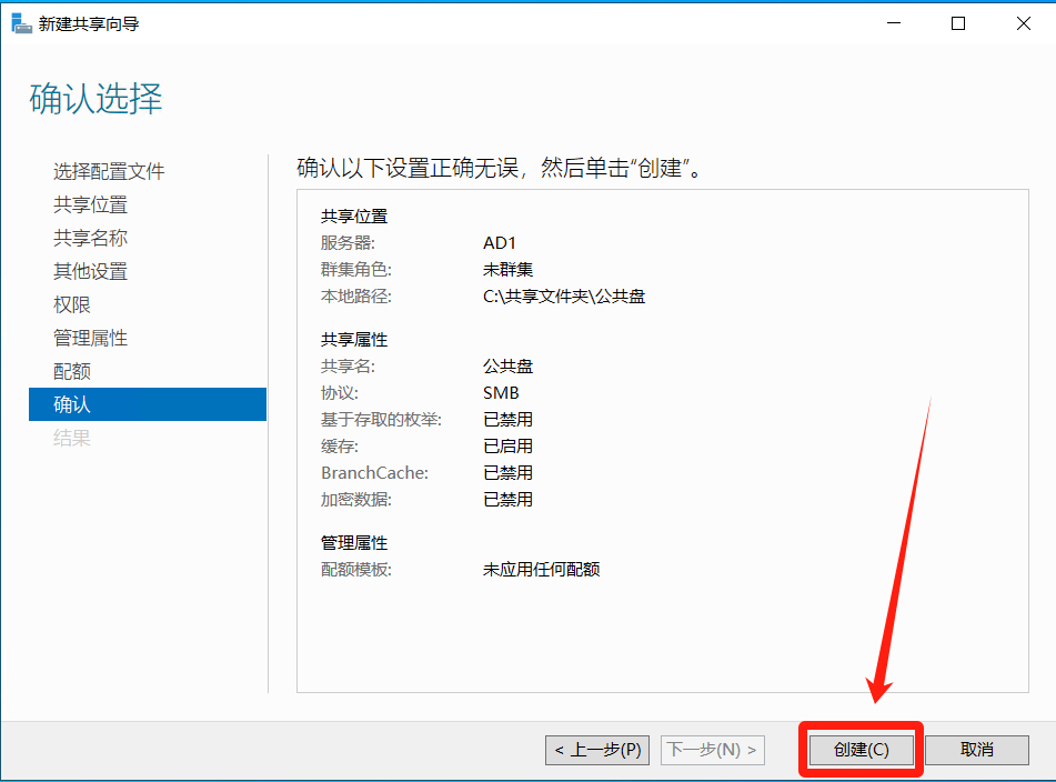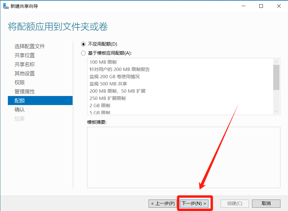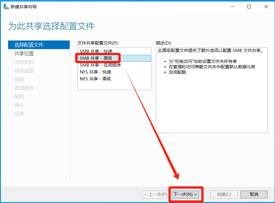 启用基于存取的枚举:简单一点说就是如果A用户只能访问A目录的权限,那他就不会看到共享下面的B目录,就不会出现点击B目录没有访问权限的提示了,这样增强了用户体验,同时也加强文件服务器的安全性。
