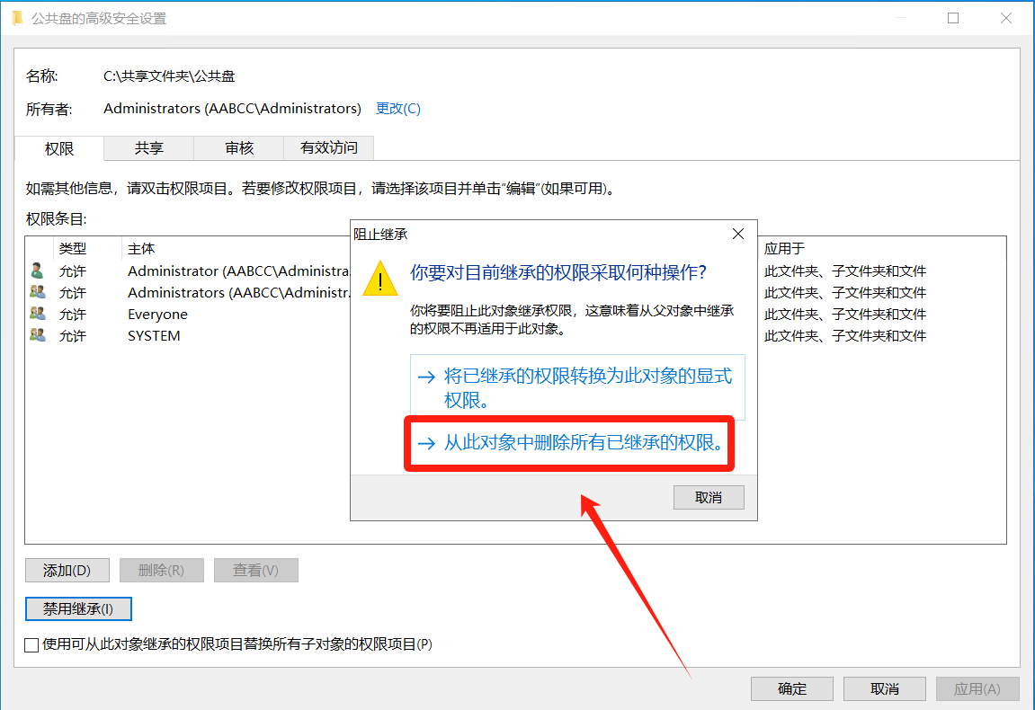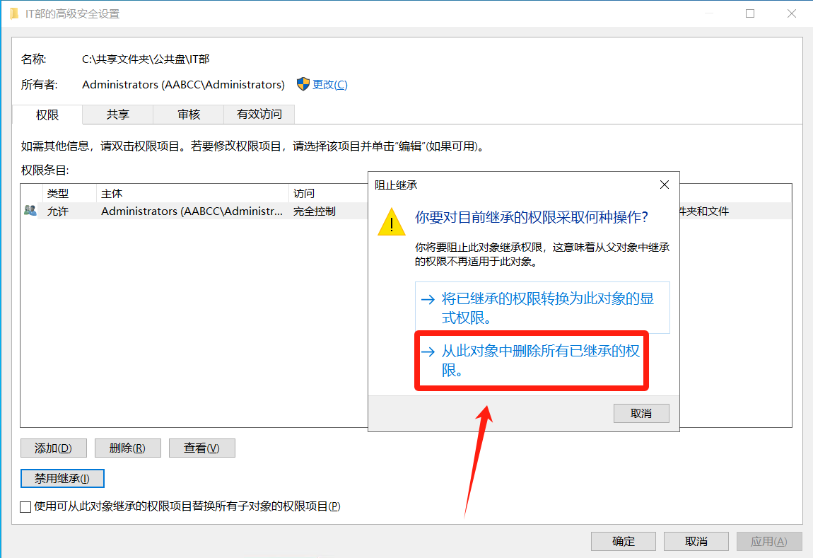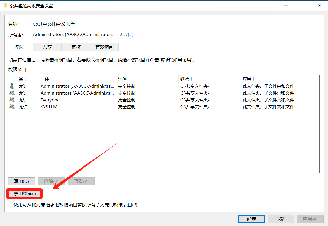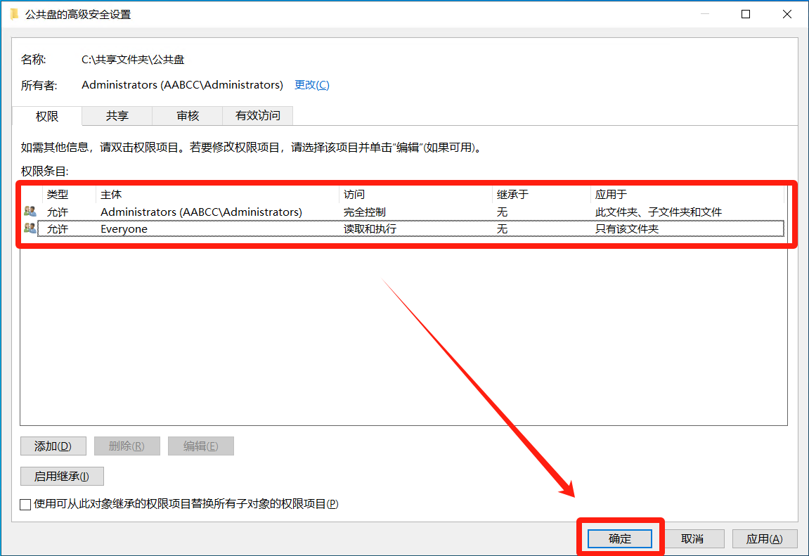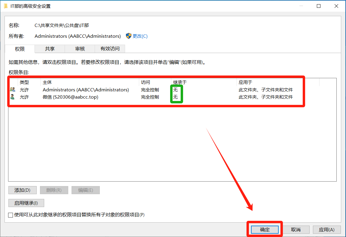 启用基于存取的枚举:简单一点说就是如果A用户只能访问A目录的权限,那他就不会看到共享下面的B目录,就不会出现点击B目录没有访问权限的提示了,这样增强了用户体验,同时也加强文件服务器的安全性。