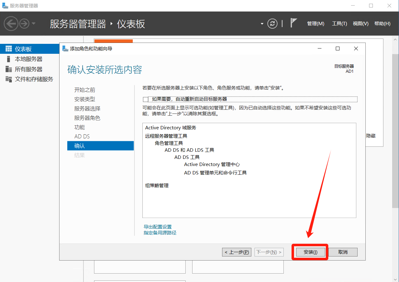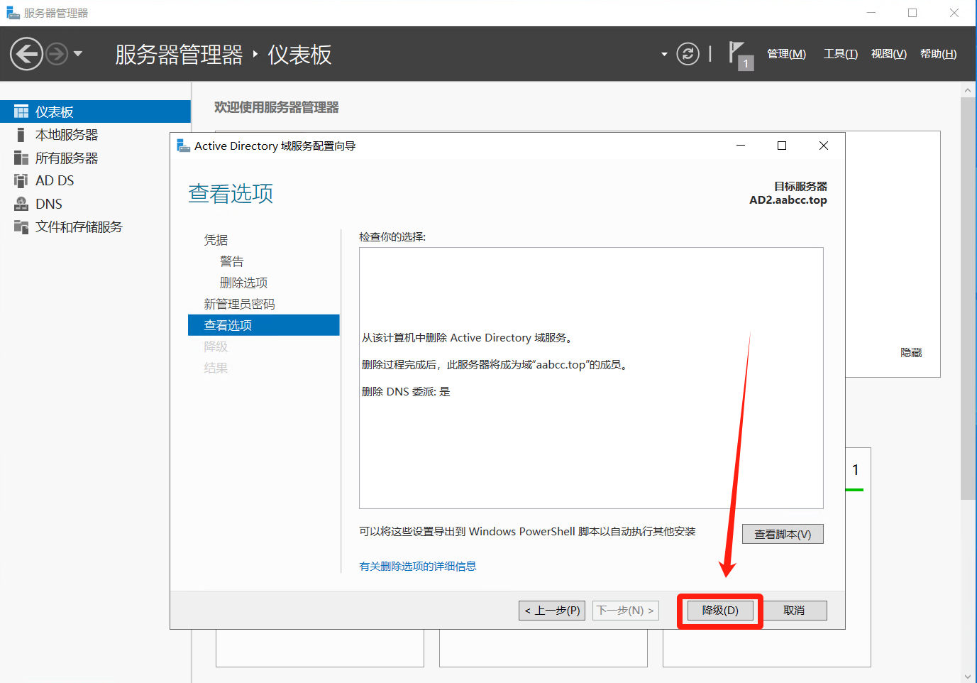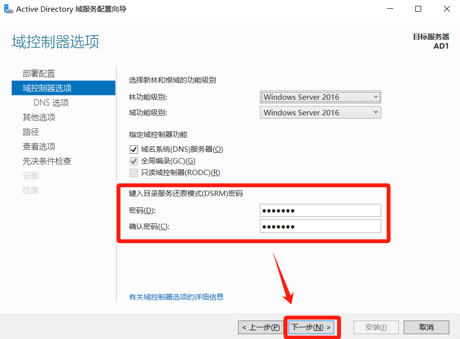 键入目录还原模式(DSRM)密码:AD1dsrm