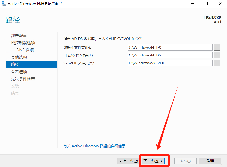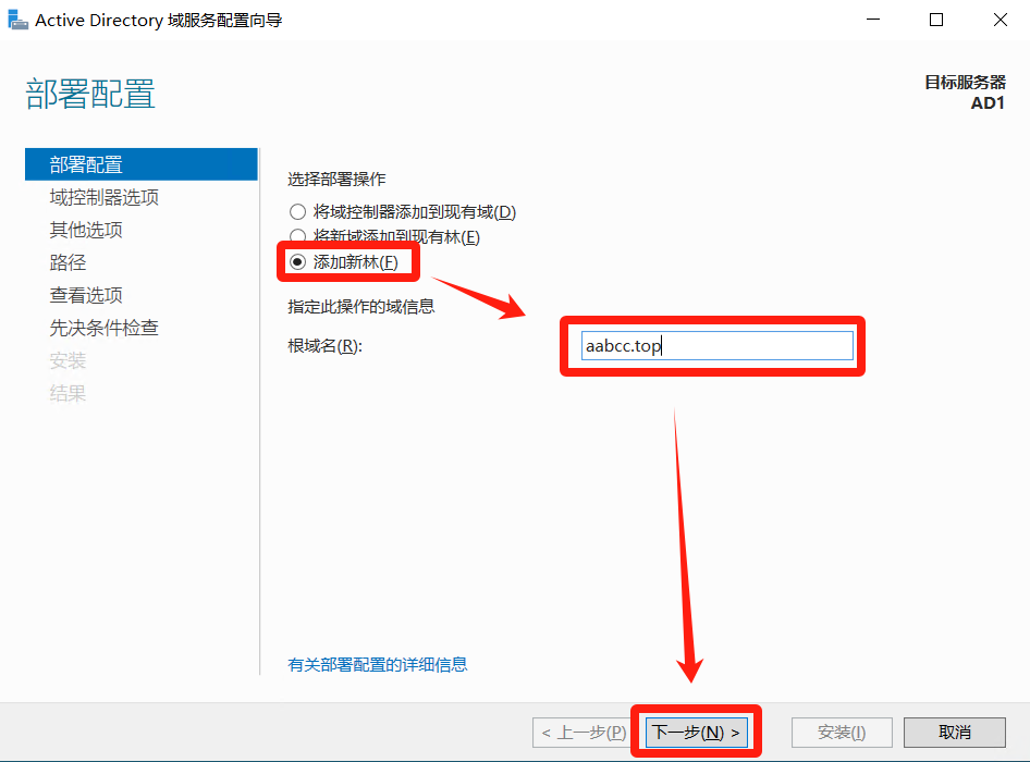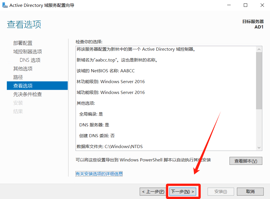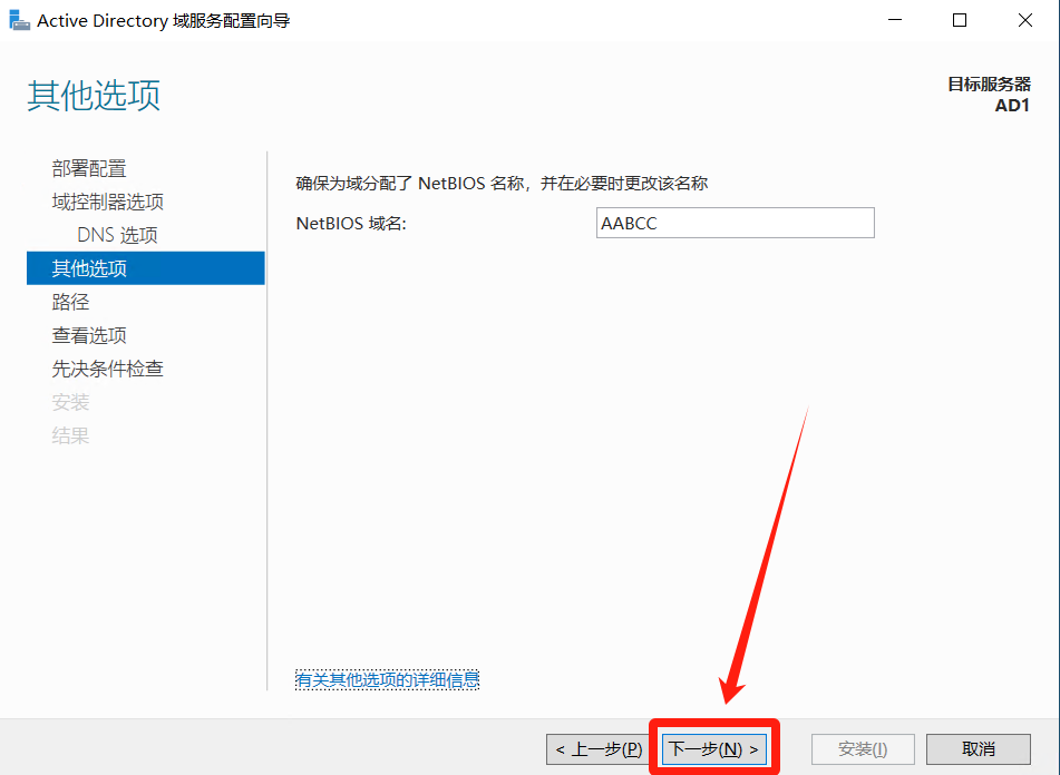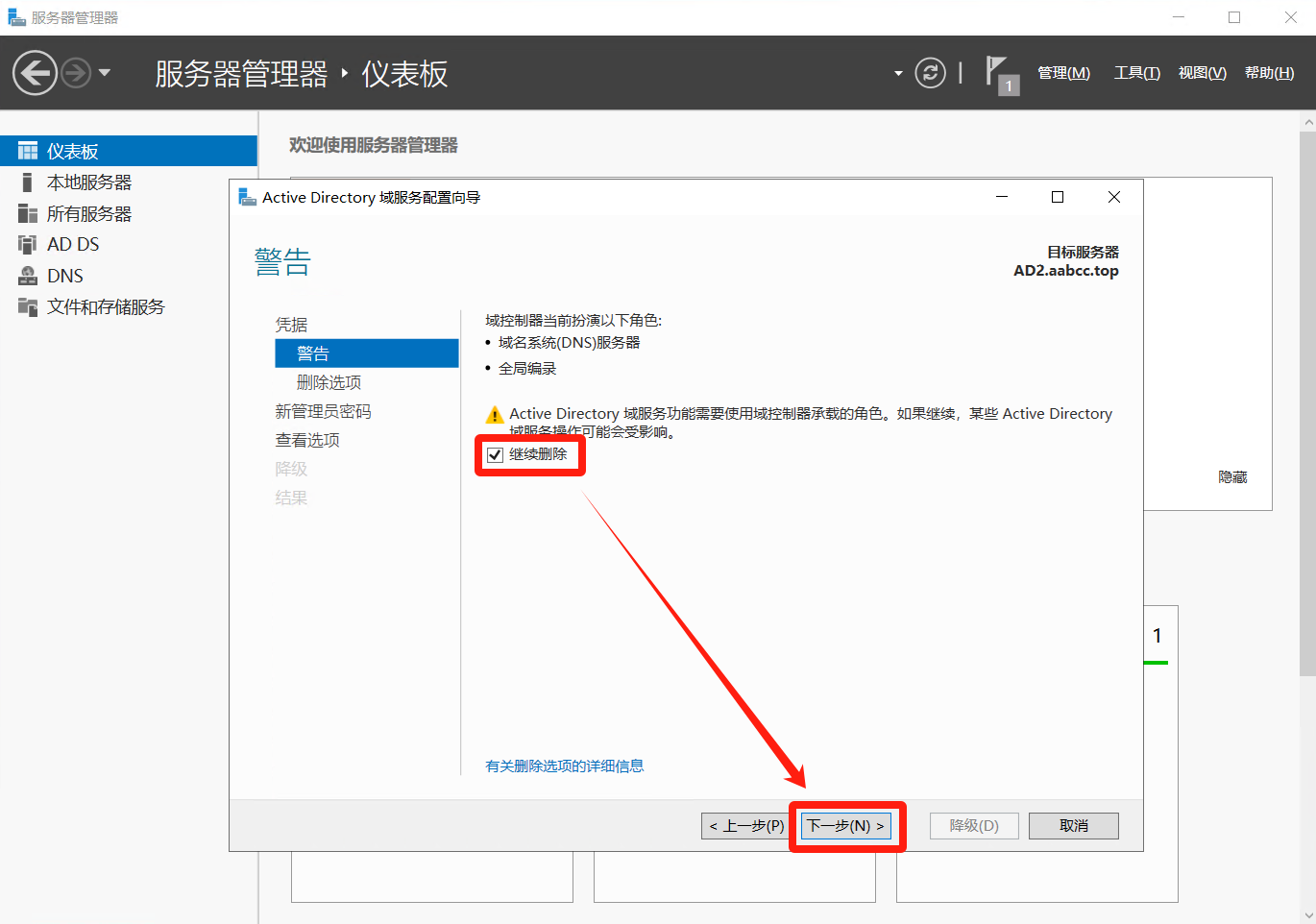 键入目录还原模式(DSRM)密码:AD1dsrm