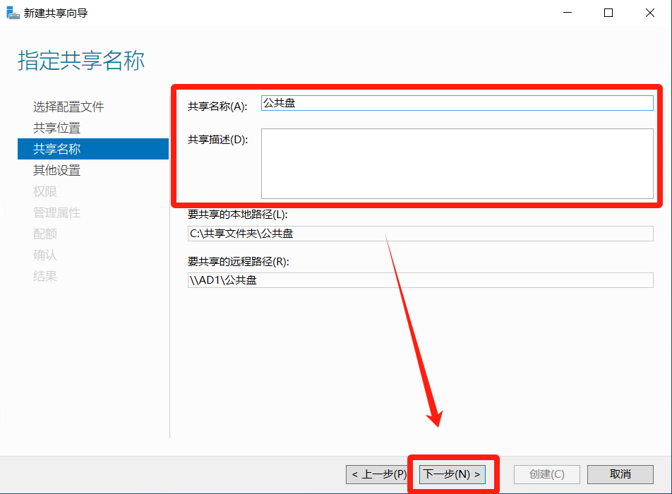 (生产环境中请使用单独的文件存储服务器设置共享文件夹,而不是在AD域服务器上。)