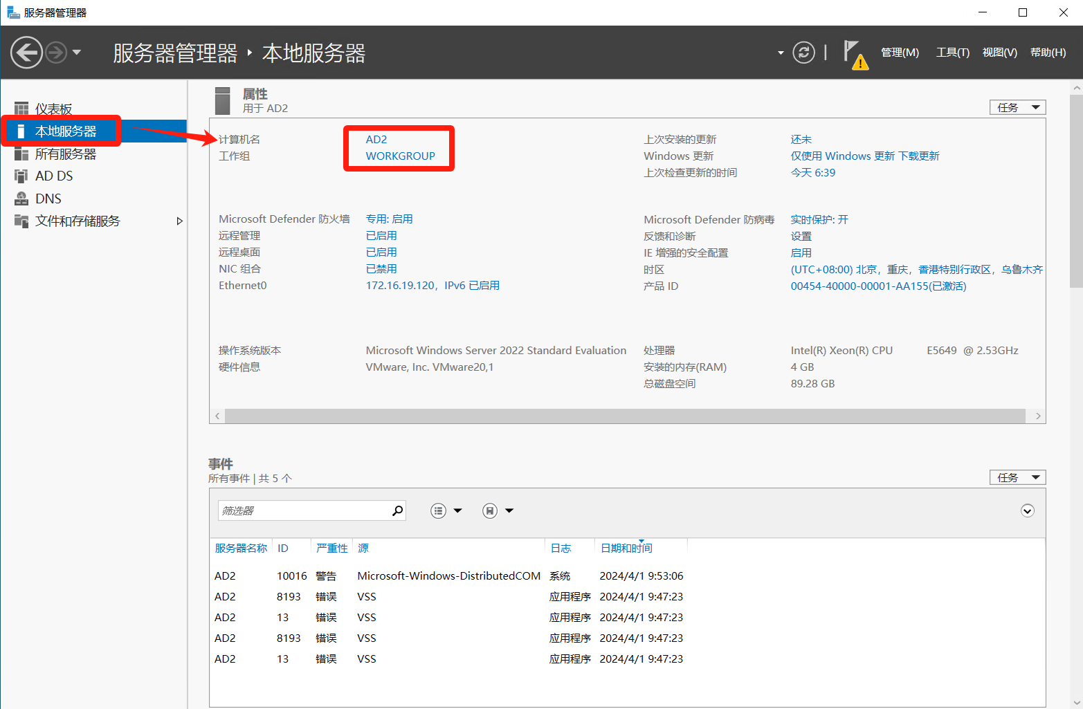 Windows Server 2022 搭建AD域(Active Directory域服务)