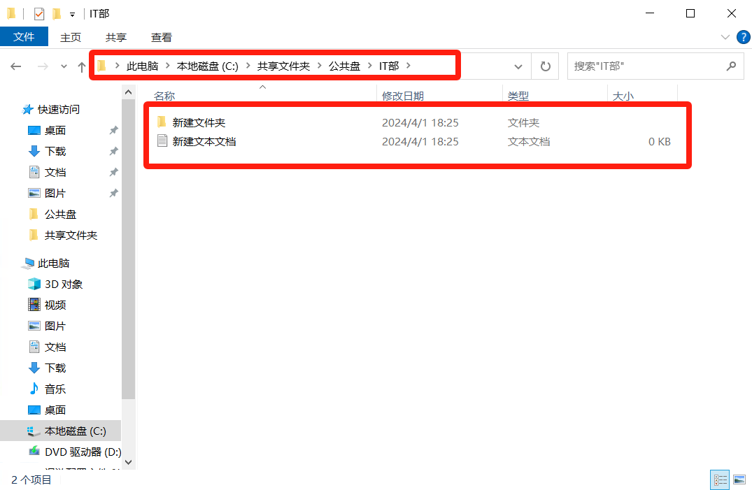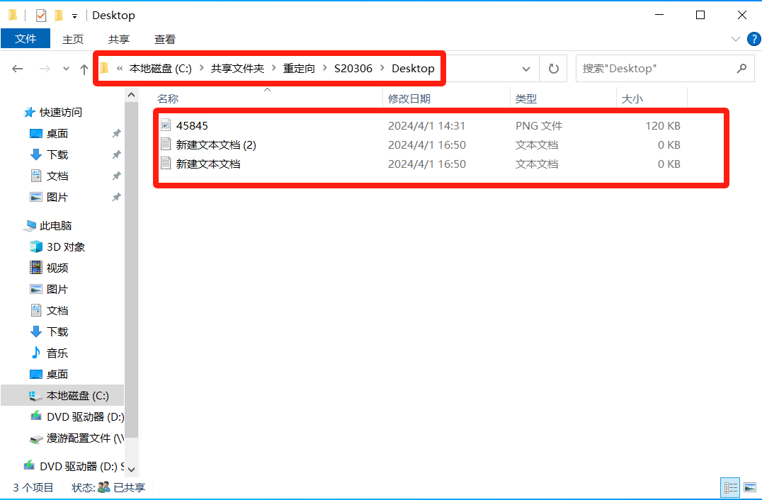 通过文件资源管理器中输入共享文件夹的路径,可以看到只有授权的文件夹可以查看。