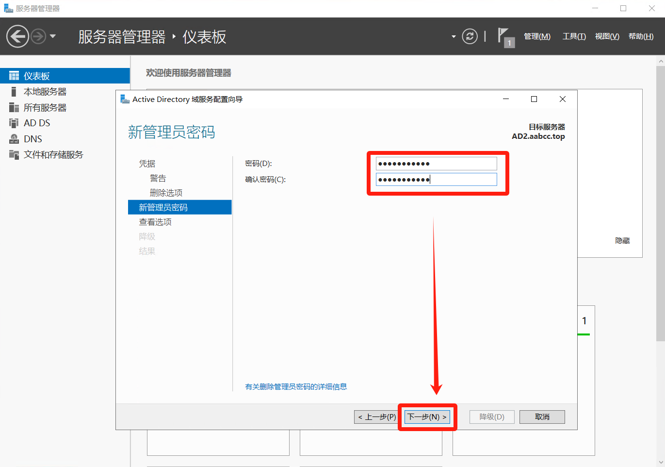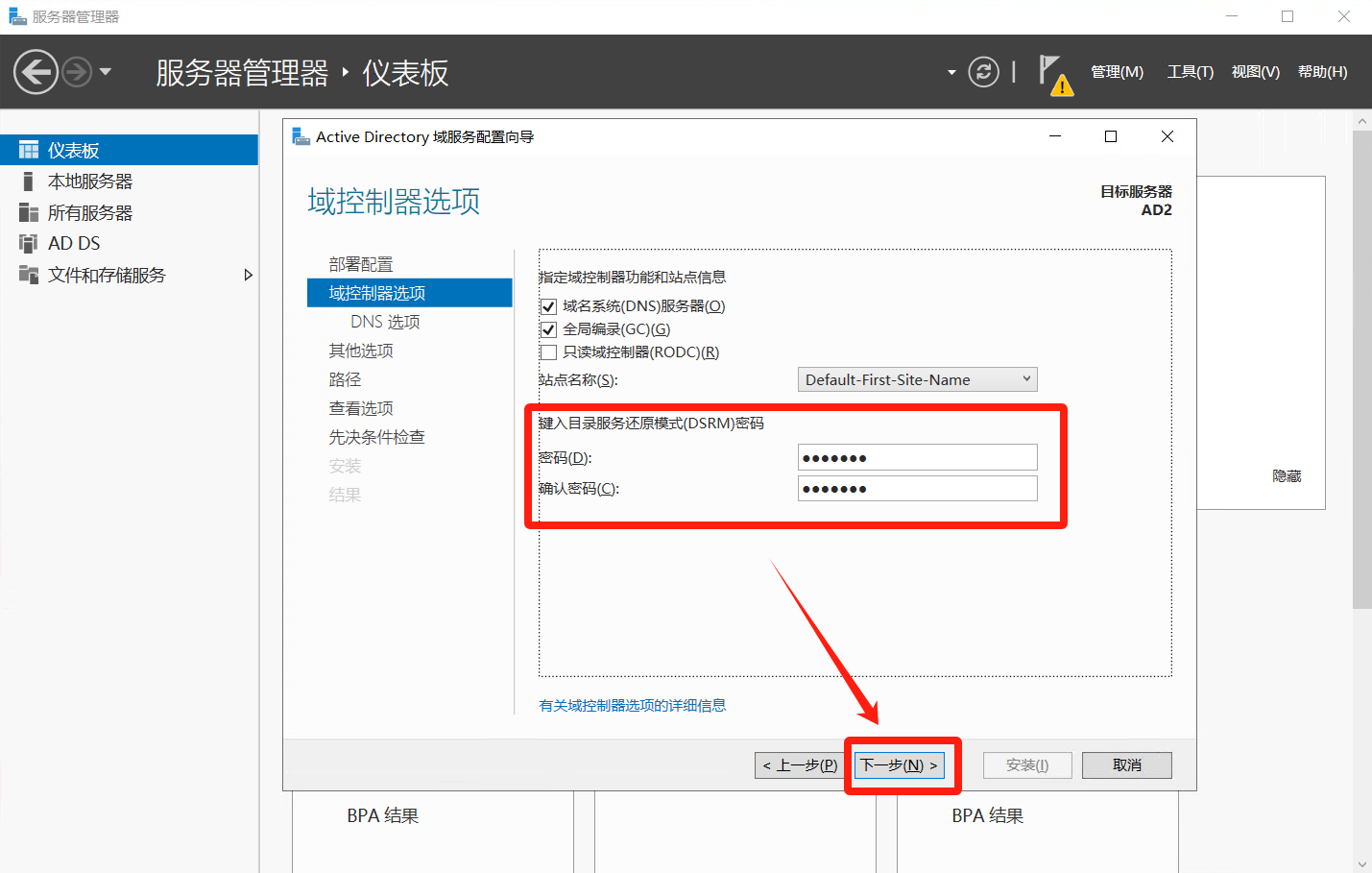 键入目录还原模式(DSRM)密码:AD2dsrm