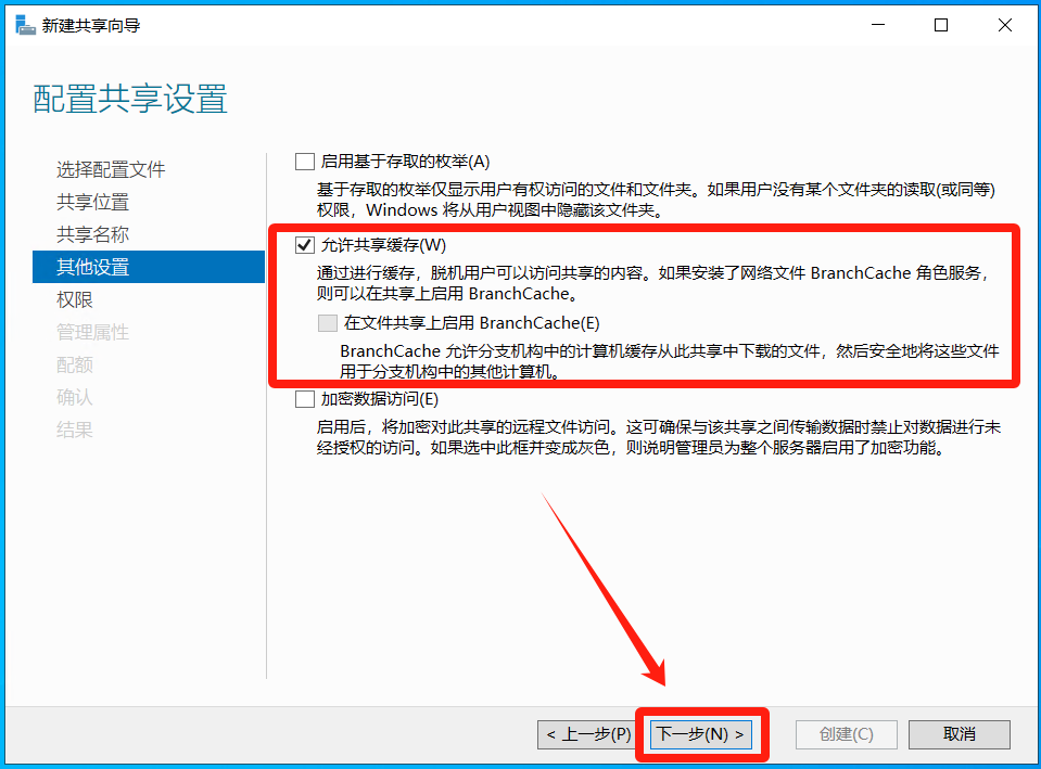 选择允许共享缓存(也可根据实际需求选择),点击下一步。