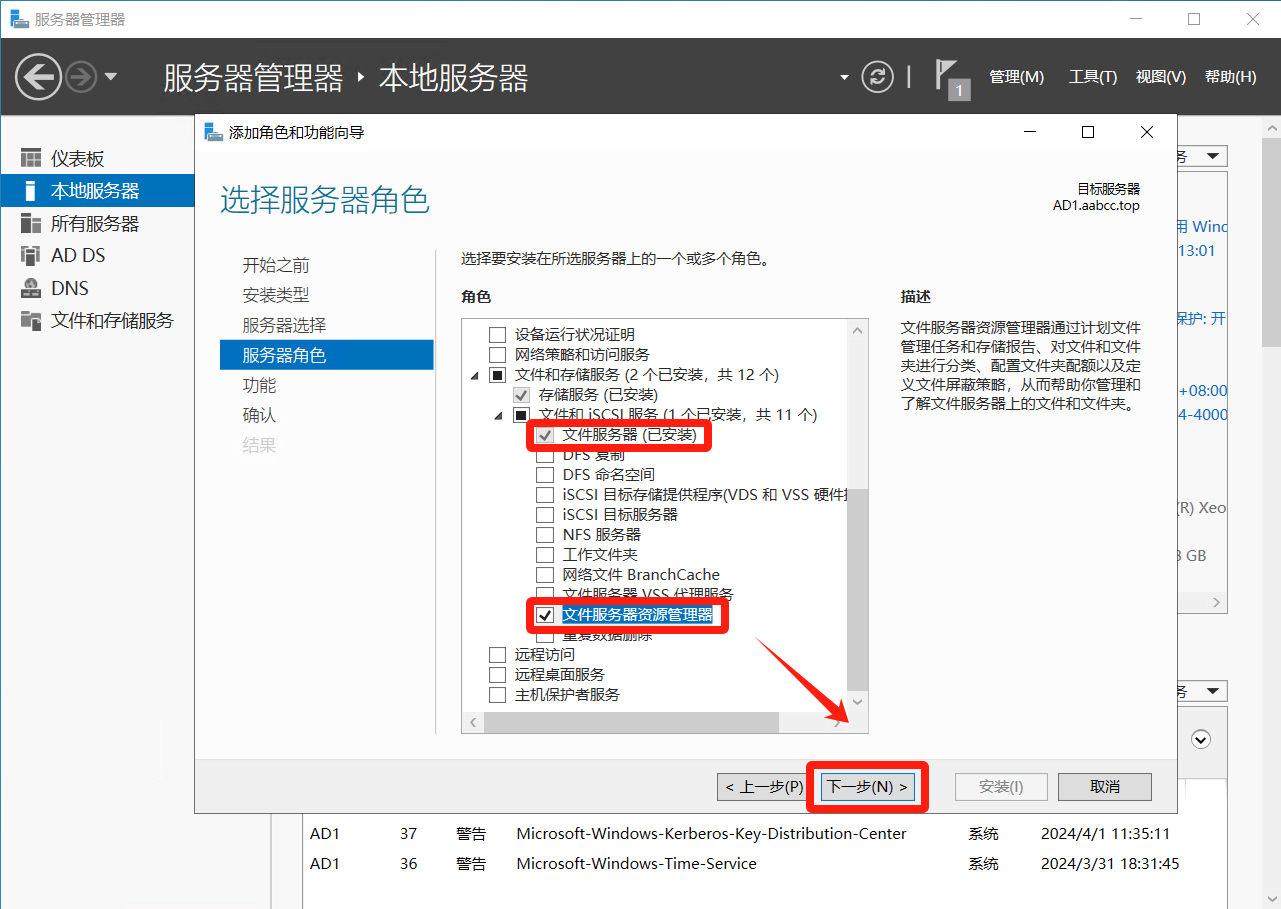 勾选文件夹服务器和文件夹服务器资源管理器,点击下一步。