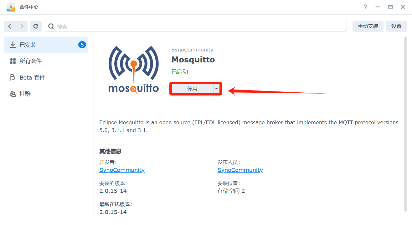 群晖套件Mosquitto安装MQTT物联网接入平台