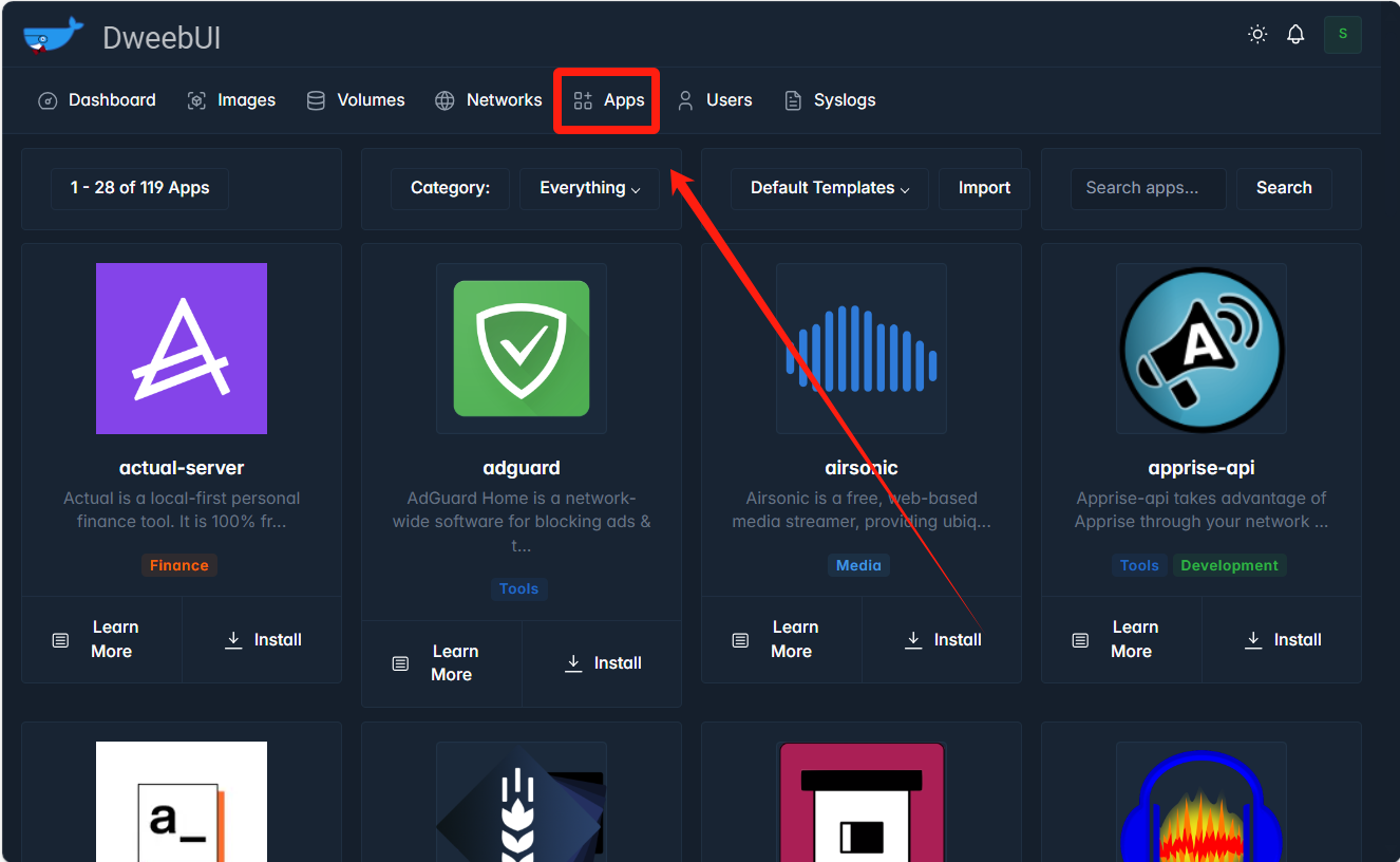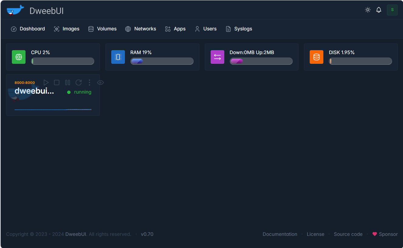 DweebUI 是一个用于管理 Docker 的 Web 界面,为您的容器提供零配置仪表板。通过 DweebUI,用户可以轻松查看容器的状态,管理容器生命周期,并执行常见的 Docker 操作,如启动、停止和重启容器。