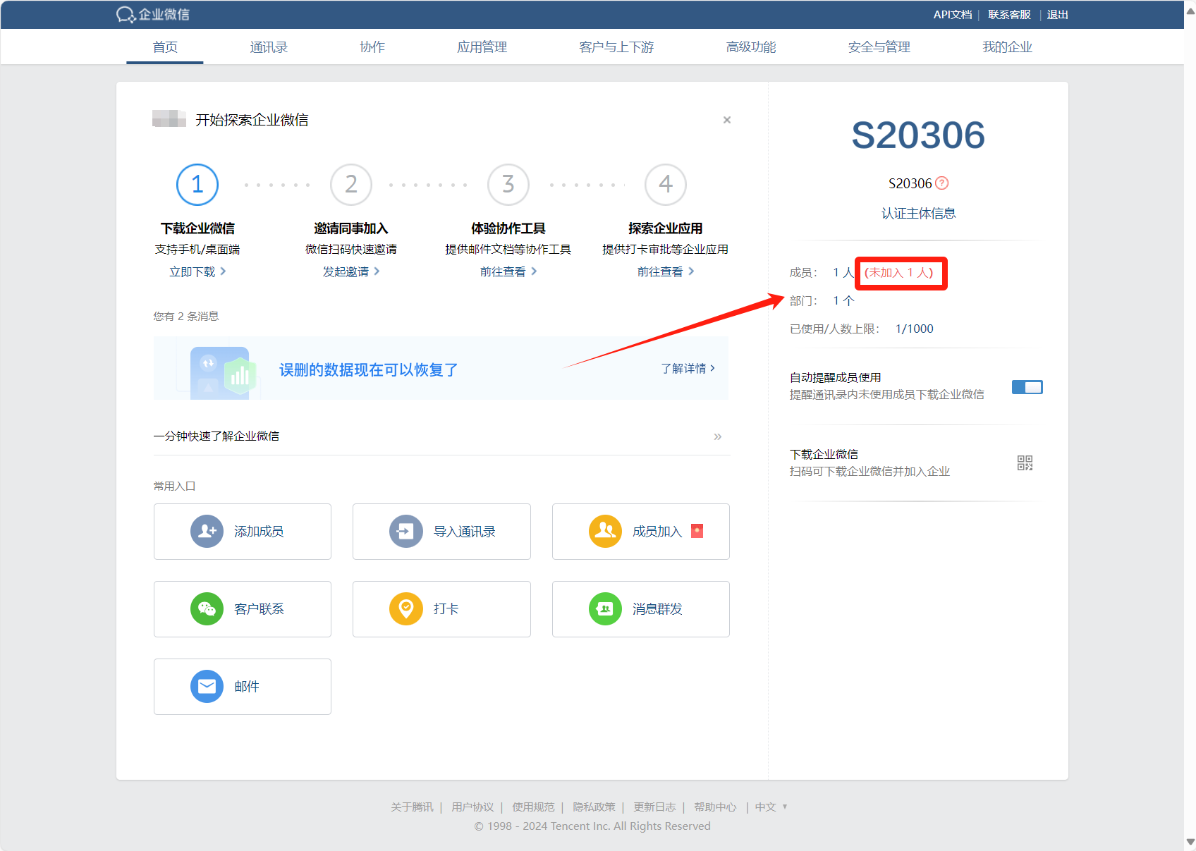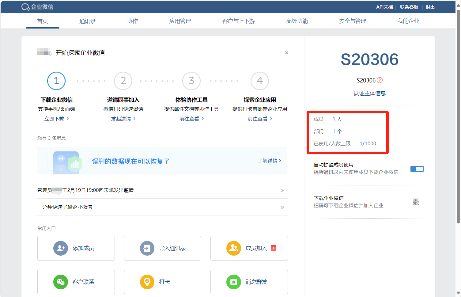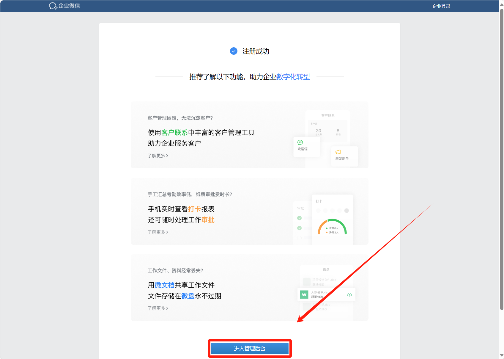 这样企业微信就注册好了