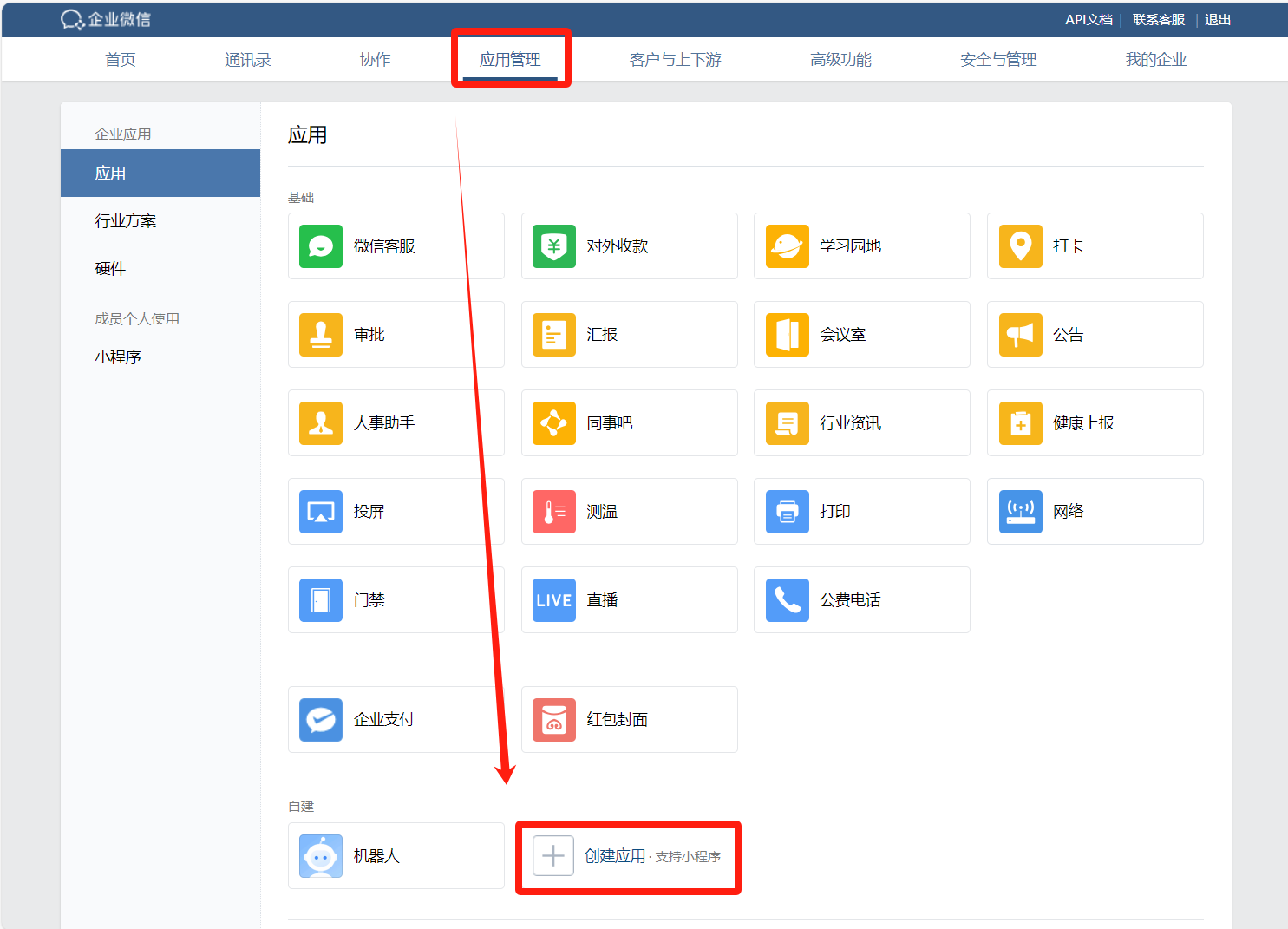 点击应用管理--创建应用
