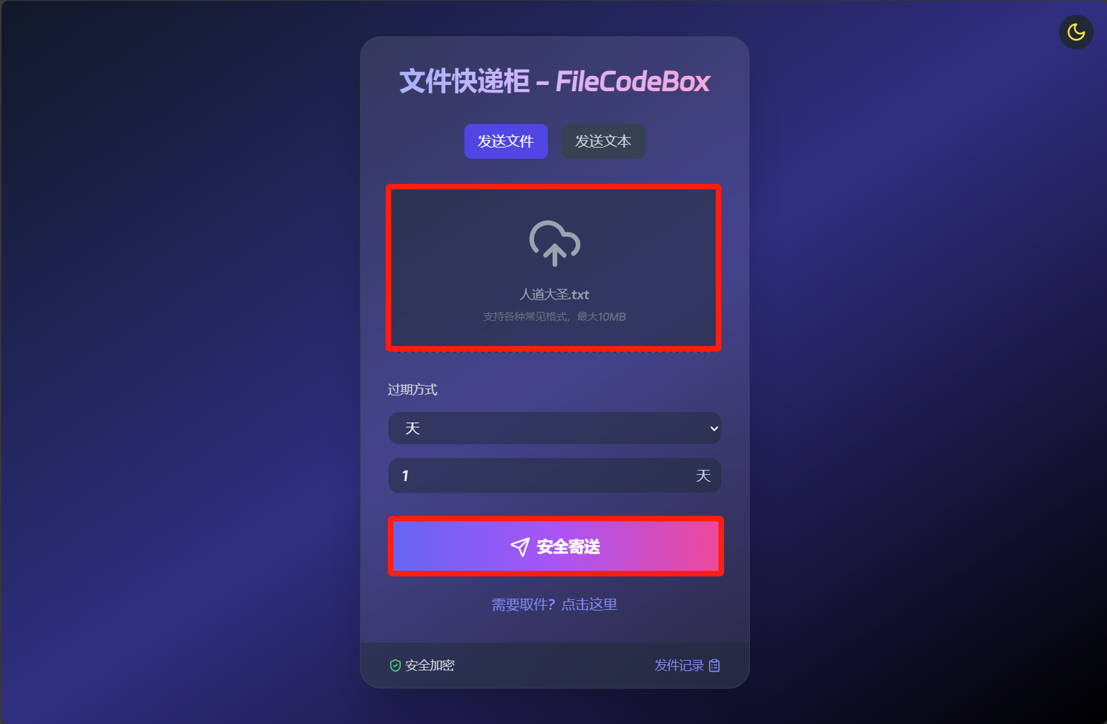 匿名口令分享文本,文件,像拿快递一样取文件